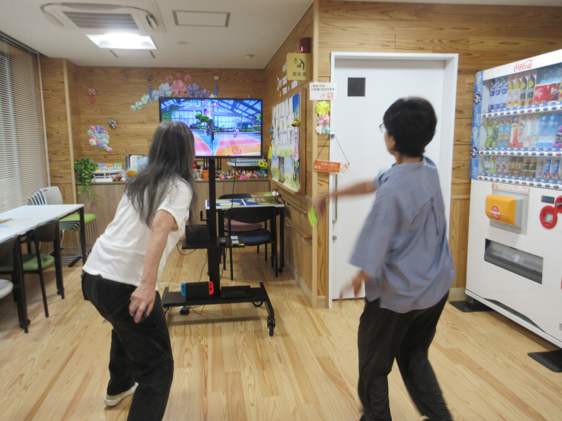もう一つのバレーボールは、利用者さん同士で対戦しました。