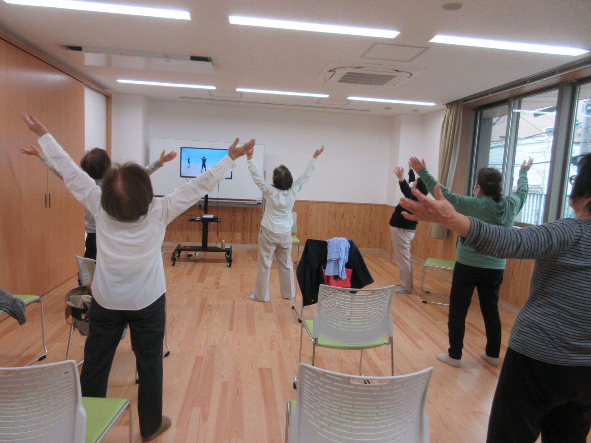 皆さんはビデオを見ながら、楽しそうに体を動かしていました。