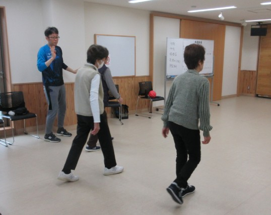 後半は、歩行を行いました。漫然と歩くのではなく、意識するのは「歩数」!