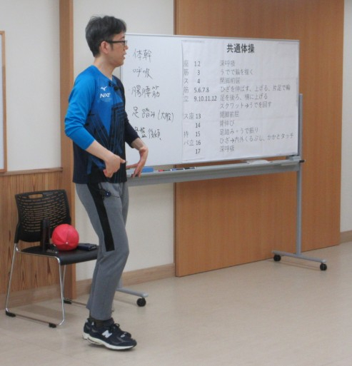 前半は、「腸腰筋 (ちょうようきん)」を意識した運動を行いました。
