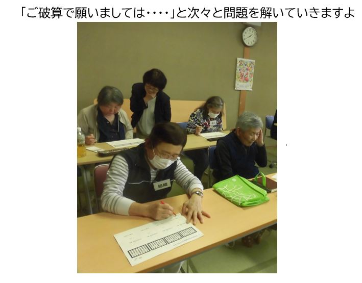 好評につき「脳トレ大人のそろばん教室」が10回コースで始まりました。