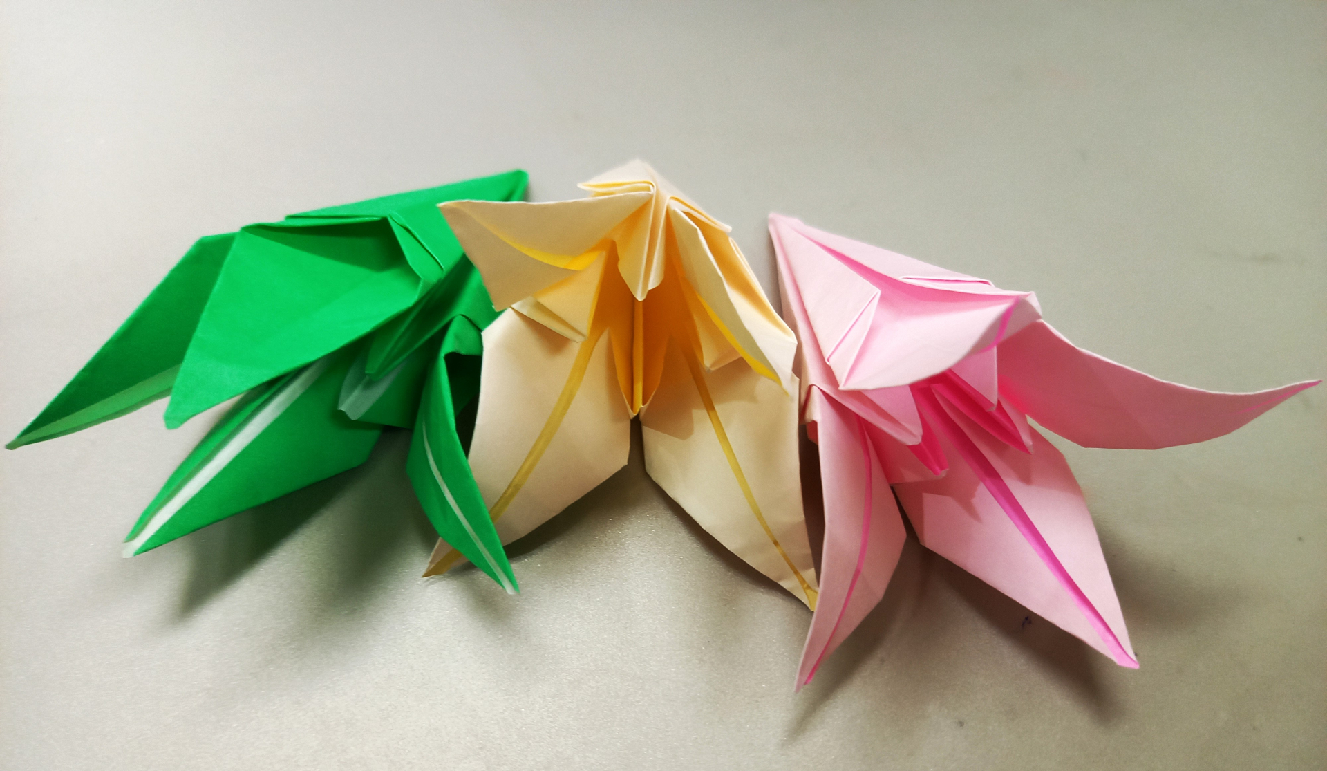 折り紙の中でもユリは折り方が複雑で少し難しい部類。