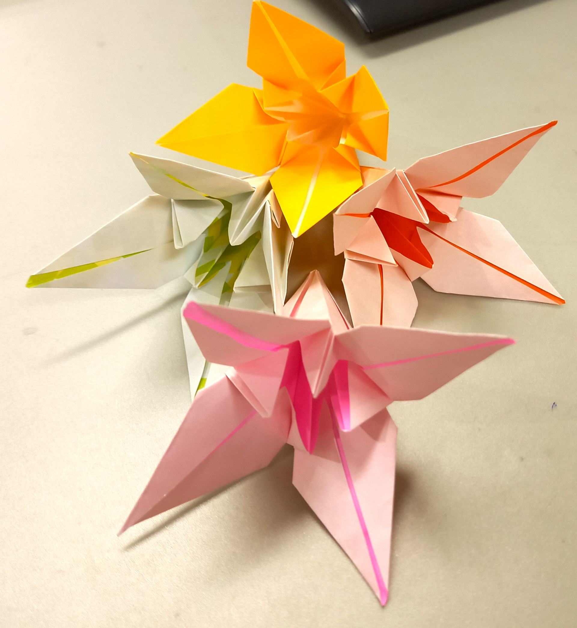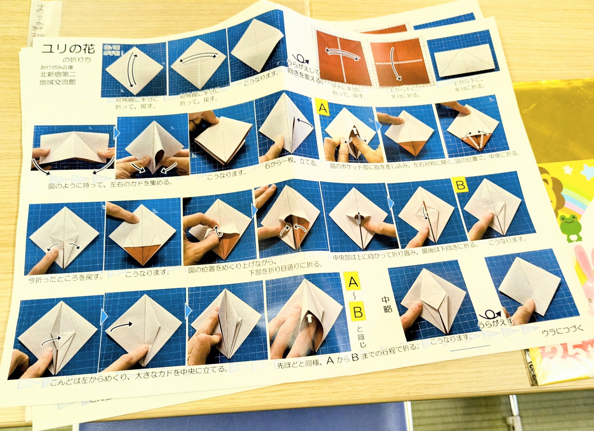 今回は、折り紙で作る「百合の花」に挑戦しました。
