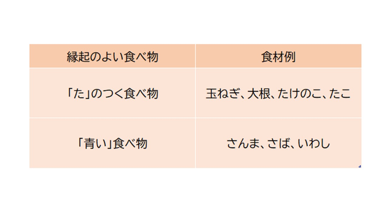 【土用辰の日の食べ物】 秋土用には、「辰の日(たつのひ)」に「た」のつくものや「青いもの」を食べると良いという風習があります。