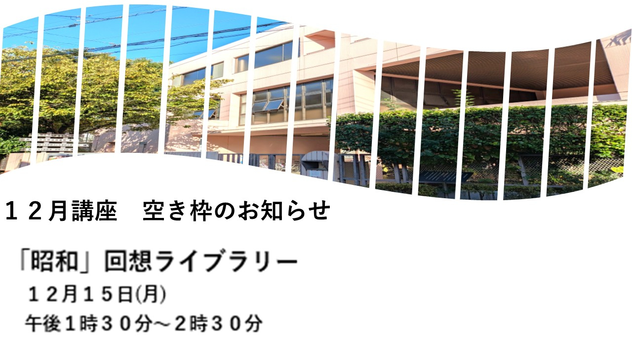 2025.11.28 お知らせ 12月講座 申込受付中⑩ Tweet シェアする 前の記事 2025.11.28 お知らせ 12月講座 申込受付中⑪ 次の記事 2025.11.28 お知らせ 12月講座 申込受付中⑨ 一覧へ戻る