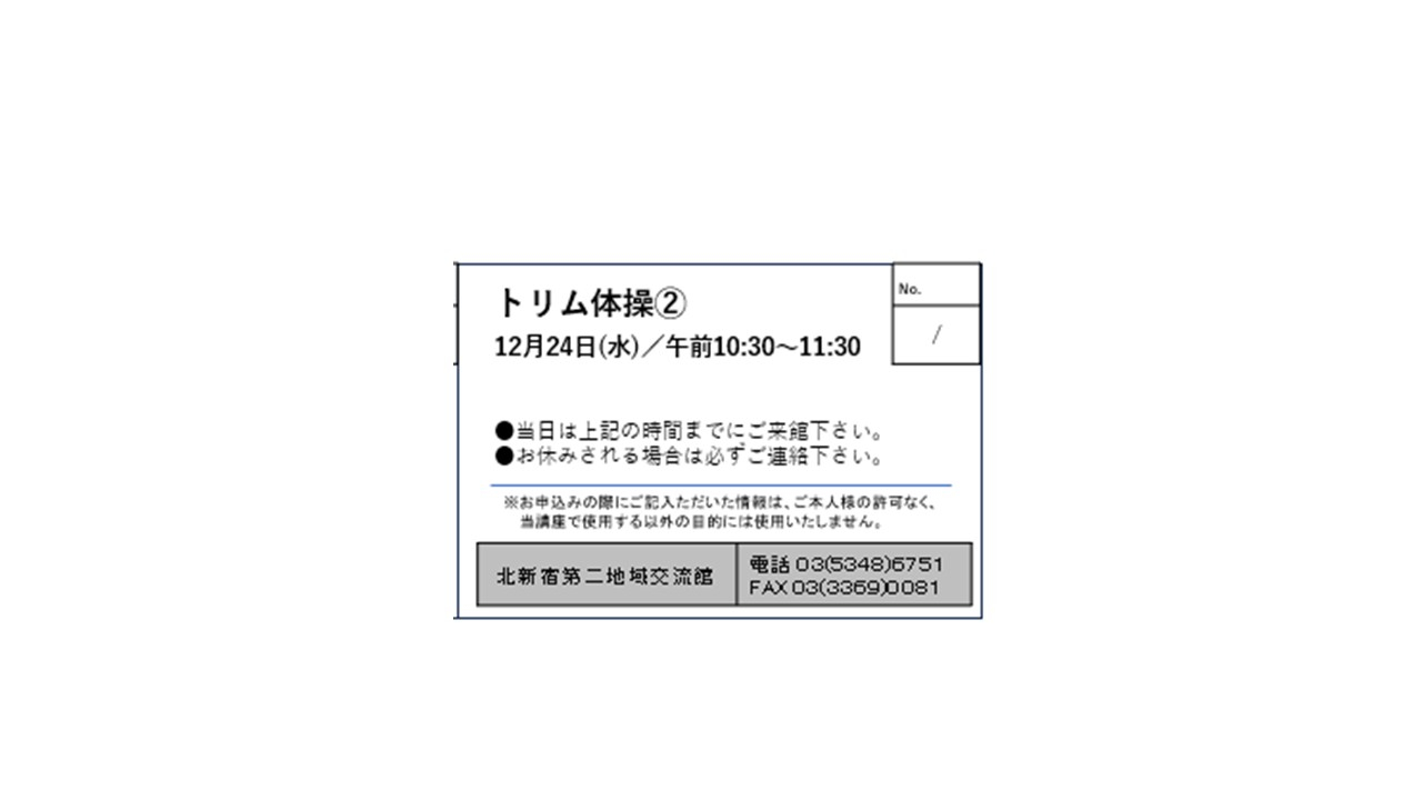 2025.12.08 お知らせ 12月 講座空き枠のお知らせ⑧ Tweet シェアする 空き枠がございます。是非ご参加ください。 前の記事 2025.12.08 お知らせ 元気アップ講座 次の記事 2025.12.08 お知らせ 12月 講座空き枠のお知らせ⑦ 一覧へ戻る