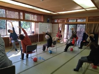 畳のお部屋の広間で行われるこの講座では、ストレッチをしっかりおこなった後のほぐしたカラダで音楽に合わせてウォーキングをするためより軽やかに動けます。