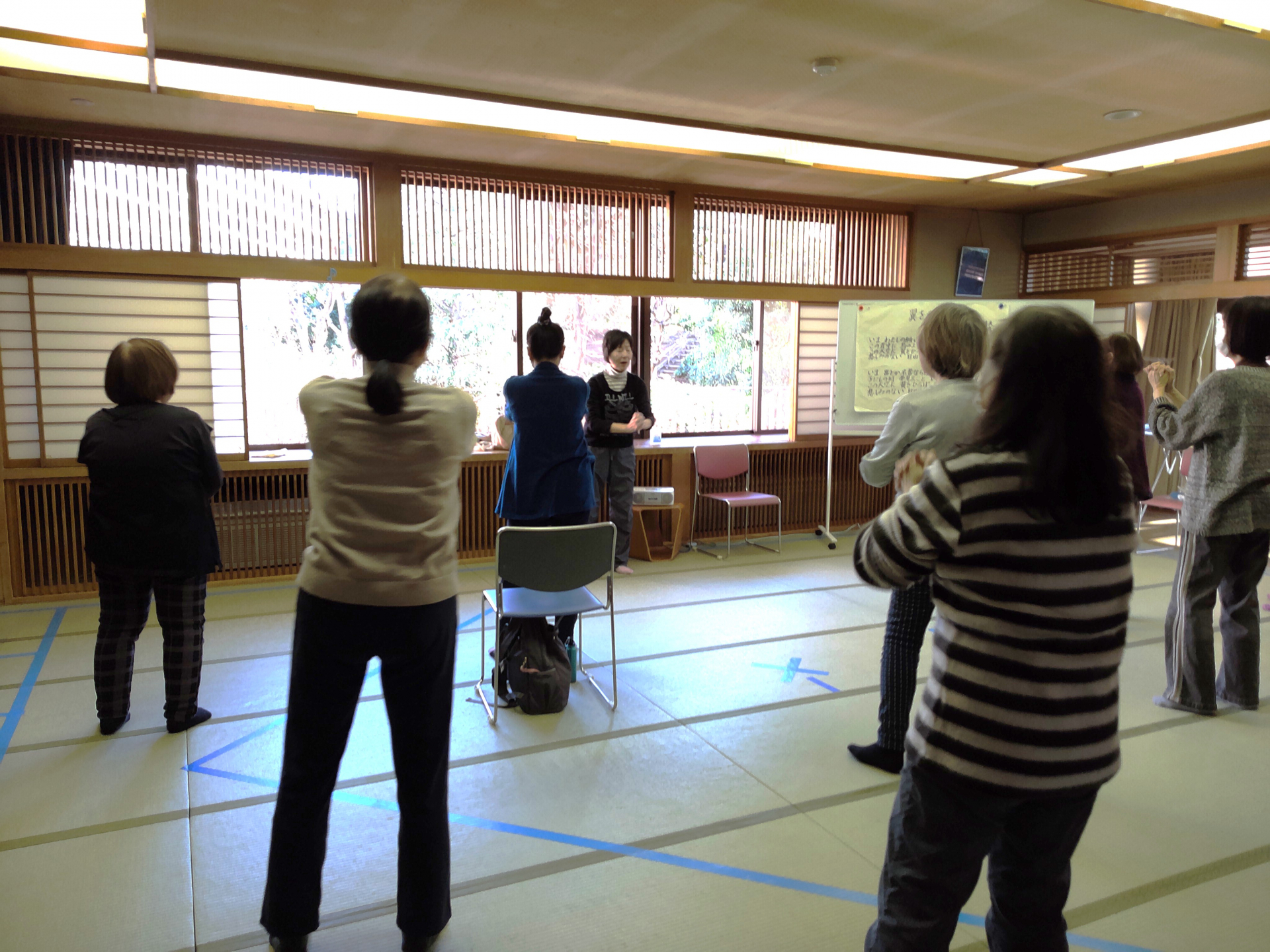 講師の先生のリードで、歌詞の意味を感じながら、手と体でリズムを刻みました。