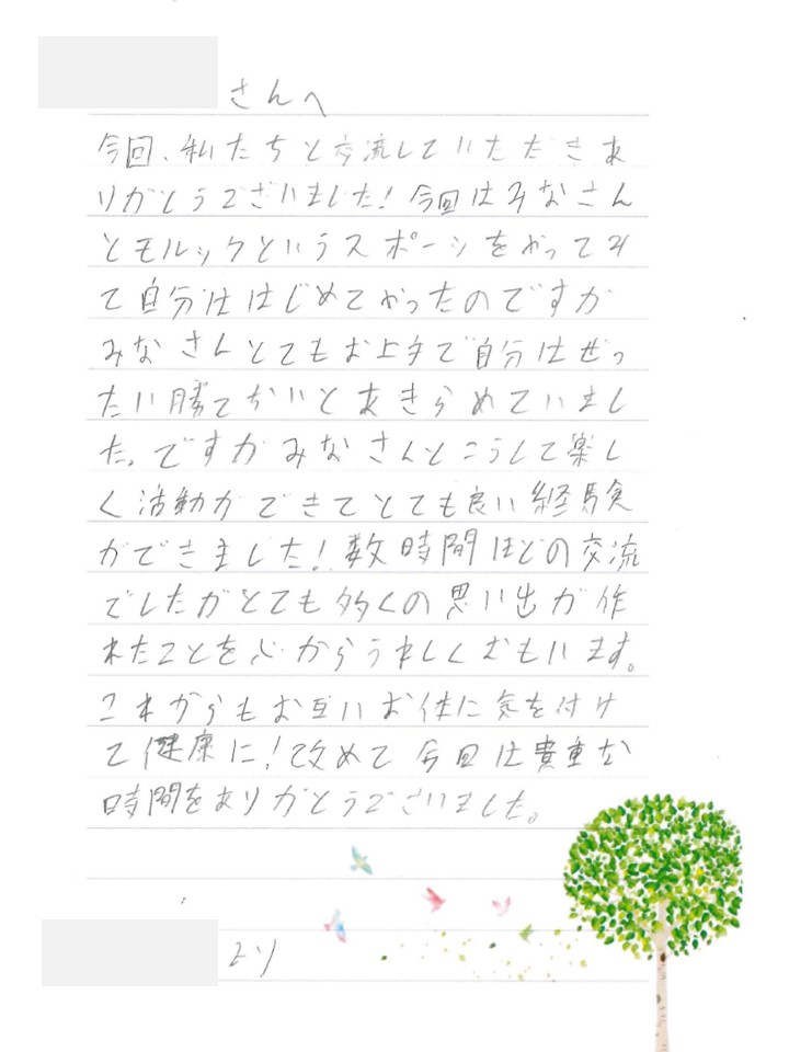 2026.01.09 活動報告 モルック交流会御礼手紙の紹介⑦ Tweet シェアする 温かいお言葉をいただき、心より感謝申し上げます。 前の記事 2026.01.09 活動報告 モルック交流会御礼手紙の紹介⑧ 次の記事 2026.01.09 活動報告 モルック交流会御礼手紙の紹介⑥ 一覧へ戻る