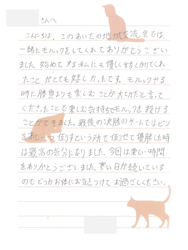 2026.01.09 活動報告 モルック交流会御礼手紙の紹介⑨ Tweet シェアする 温かいお言葉をいただき、心より感謝申し上げます。 前の記事 2026.01.09 活動報告 モルック交流会御礼手紙の紹介⑩ 次の記事 2026.01.09 活動報告 モルック交流会御礼手紙の紹介⑧ 一覧へ戻る