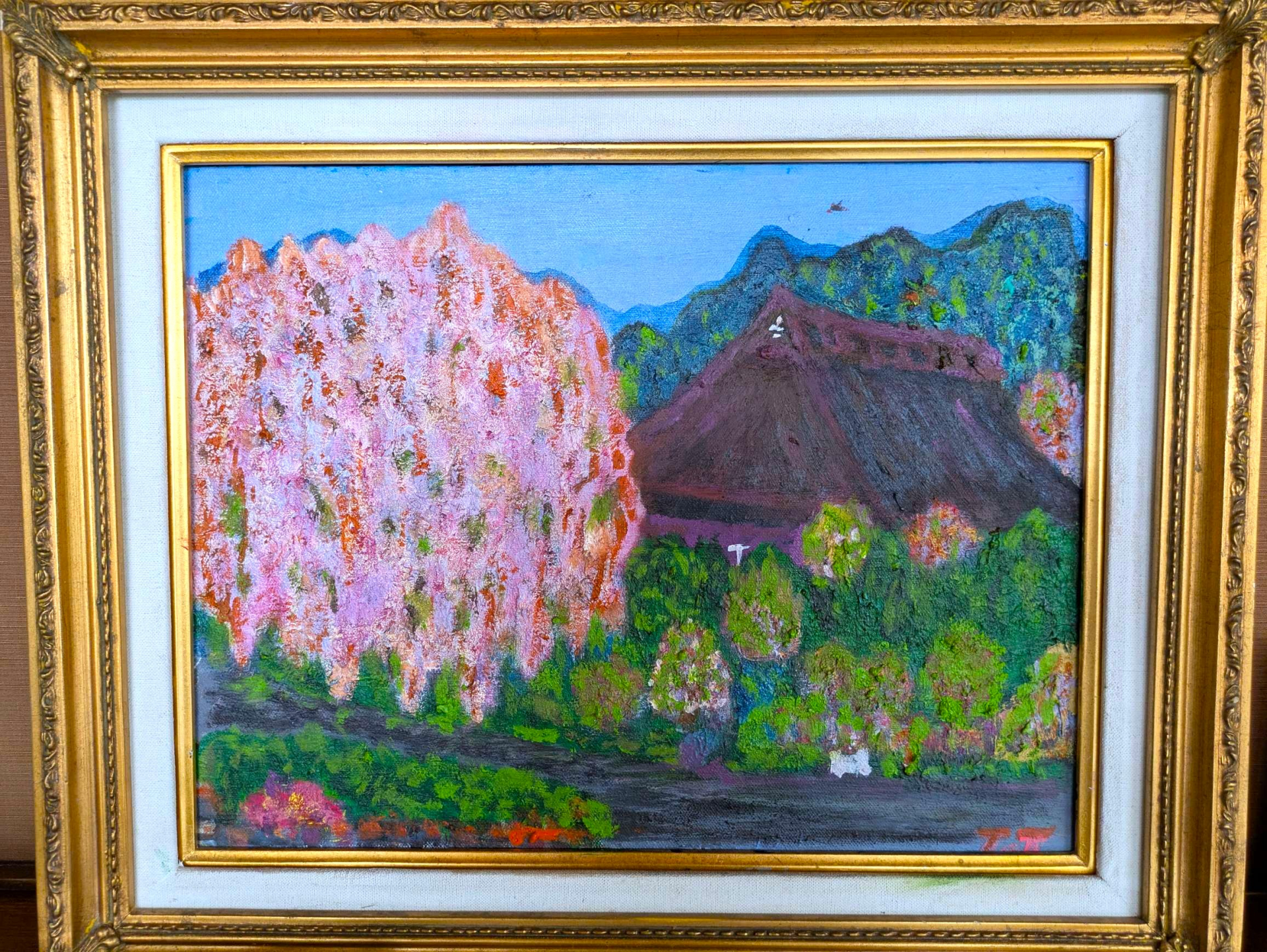 今回は、利用者様が制作された油絵作品「しだれ桜」をご紹介します。