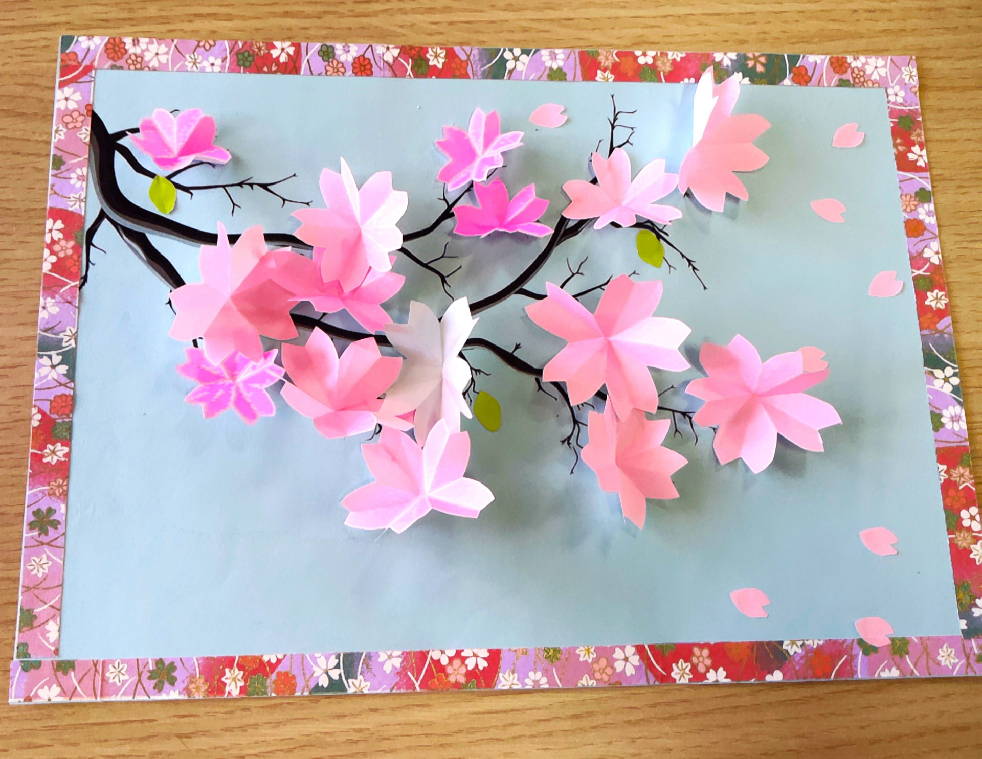 桜の花を一つひとつ折ることで、