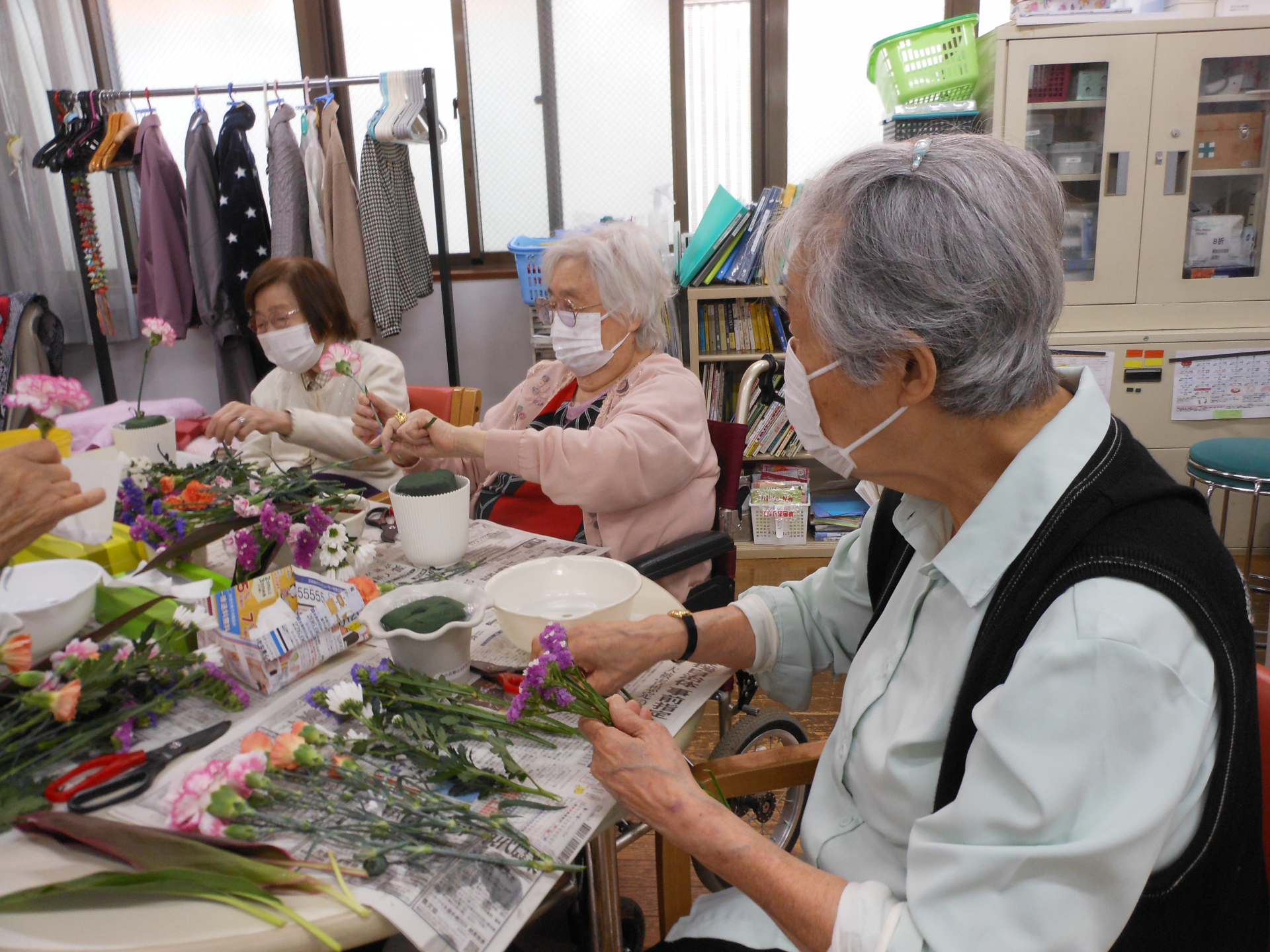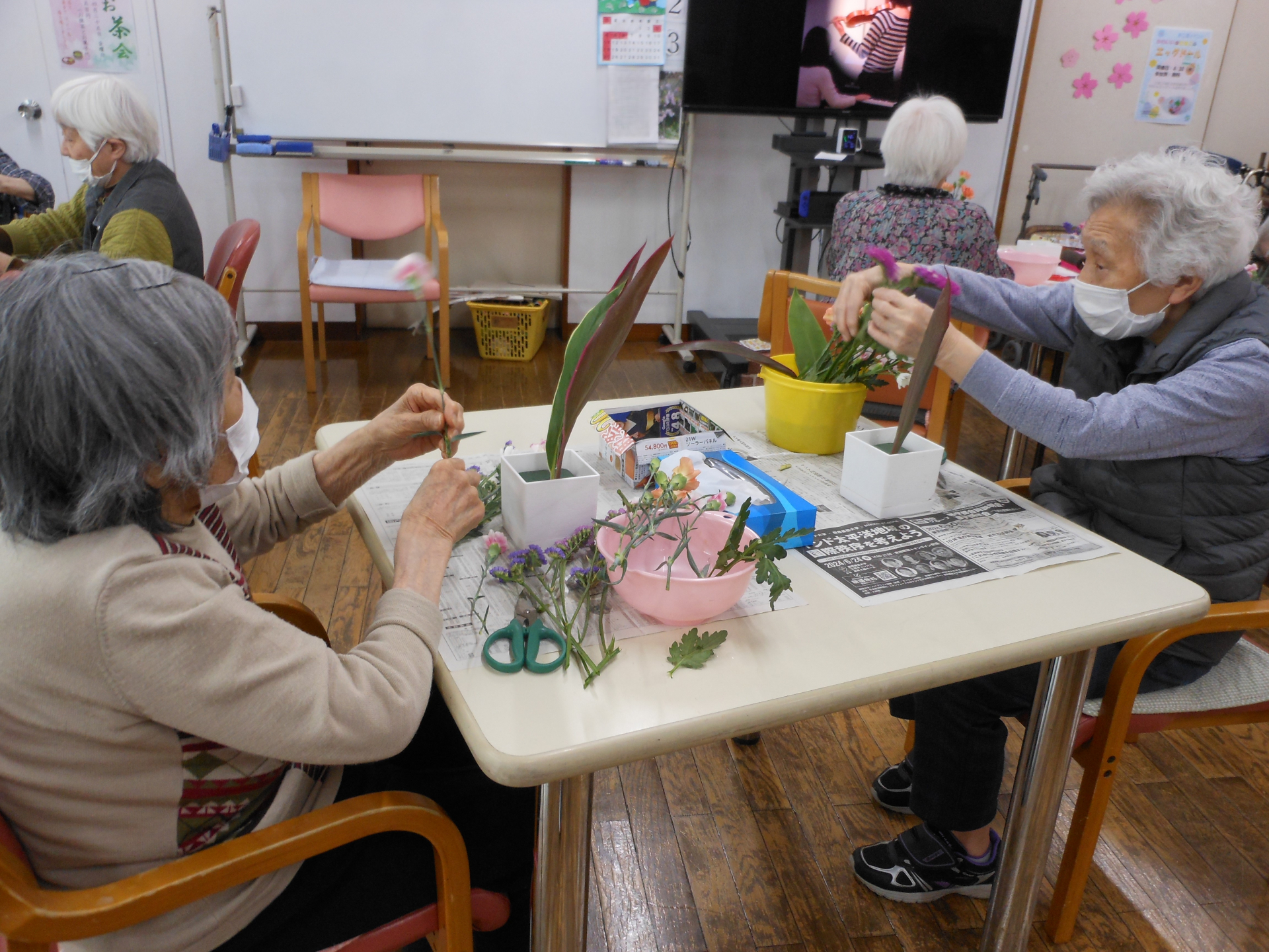 本日の午後のプログラムは「フラワーアレンジメント」の日でした。
