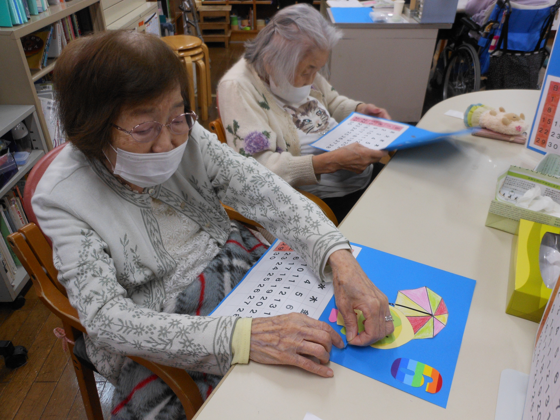 今週から午後のレクリエーションとして開始されたカレンダー作成は