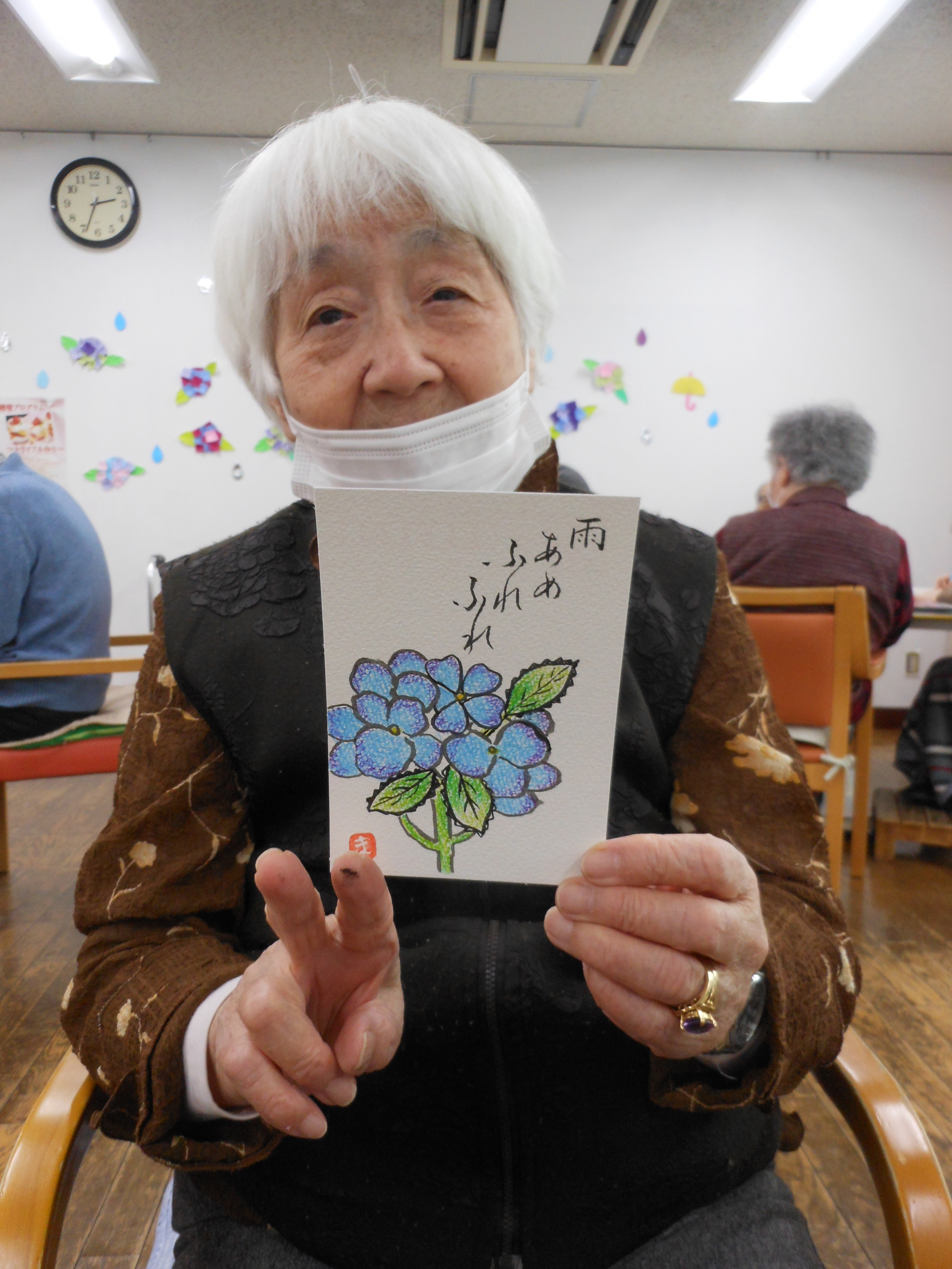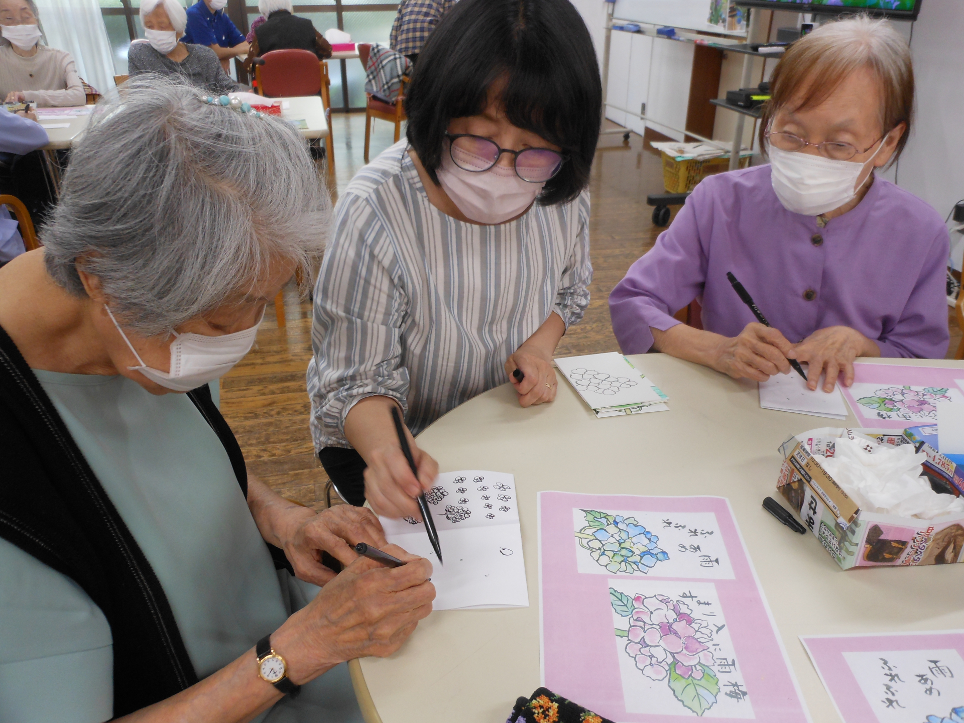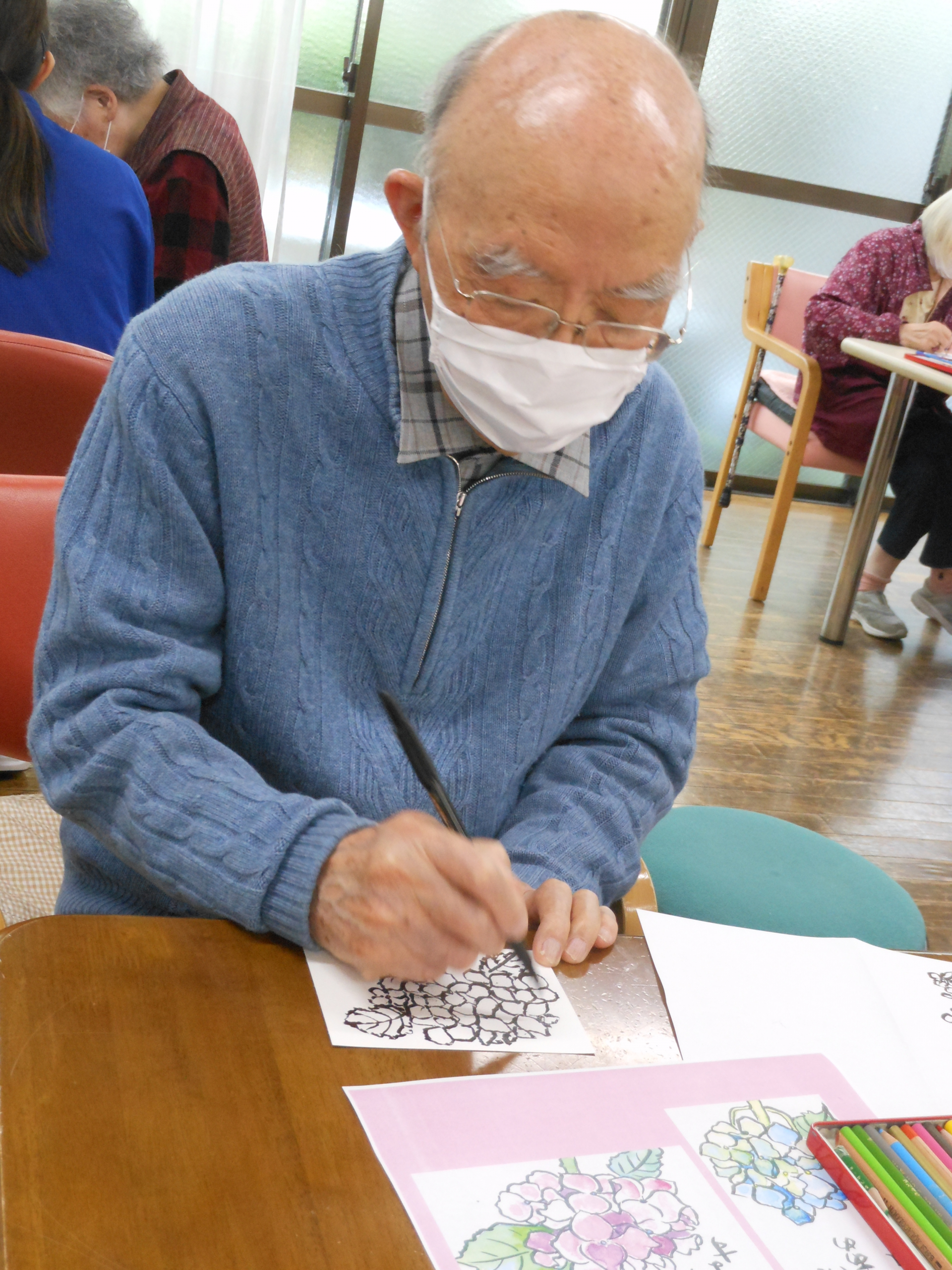 絵手紙作成中もみんなで『色』について楽しいおしゃべりをしながら進めると
