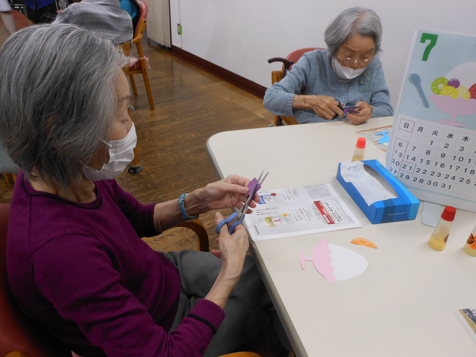 今週の午後のレクリエーションは『カレンダー制作』でした。