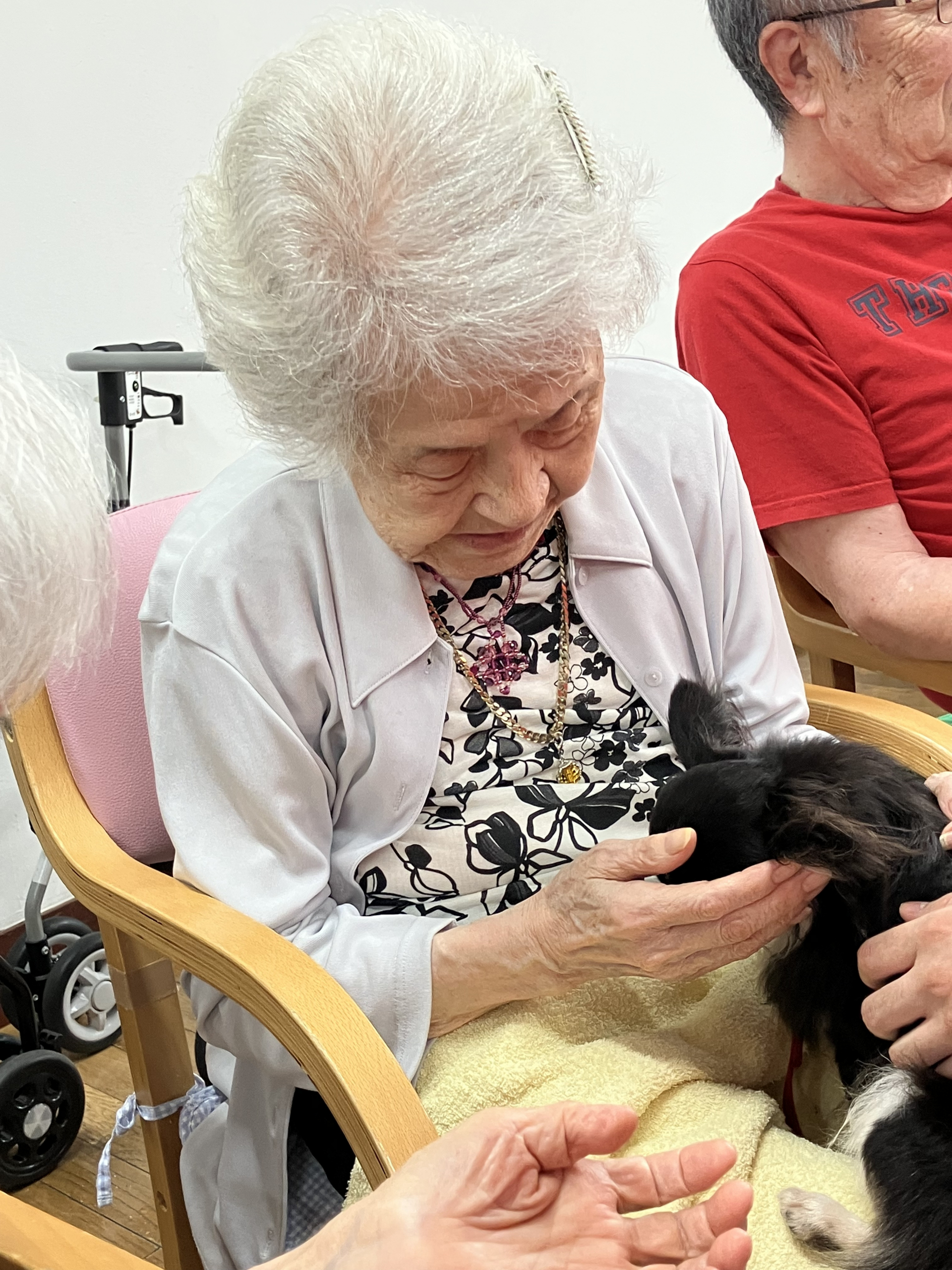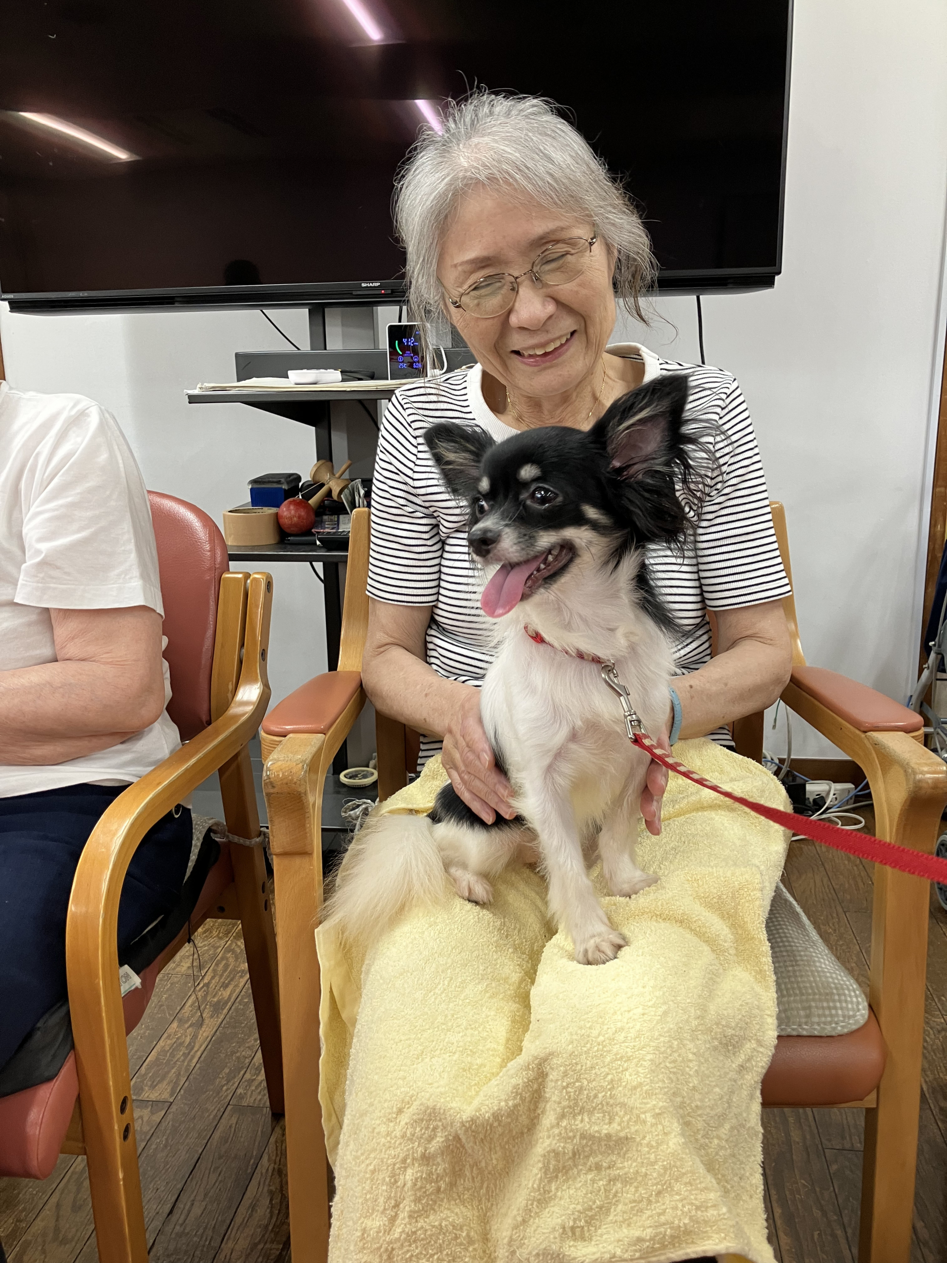 月に1回ですが、ワンちゃんとの触れ合いを楽しみにして下さっている方もおります。