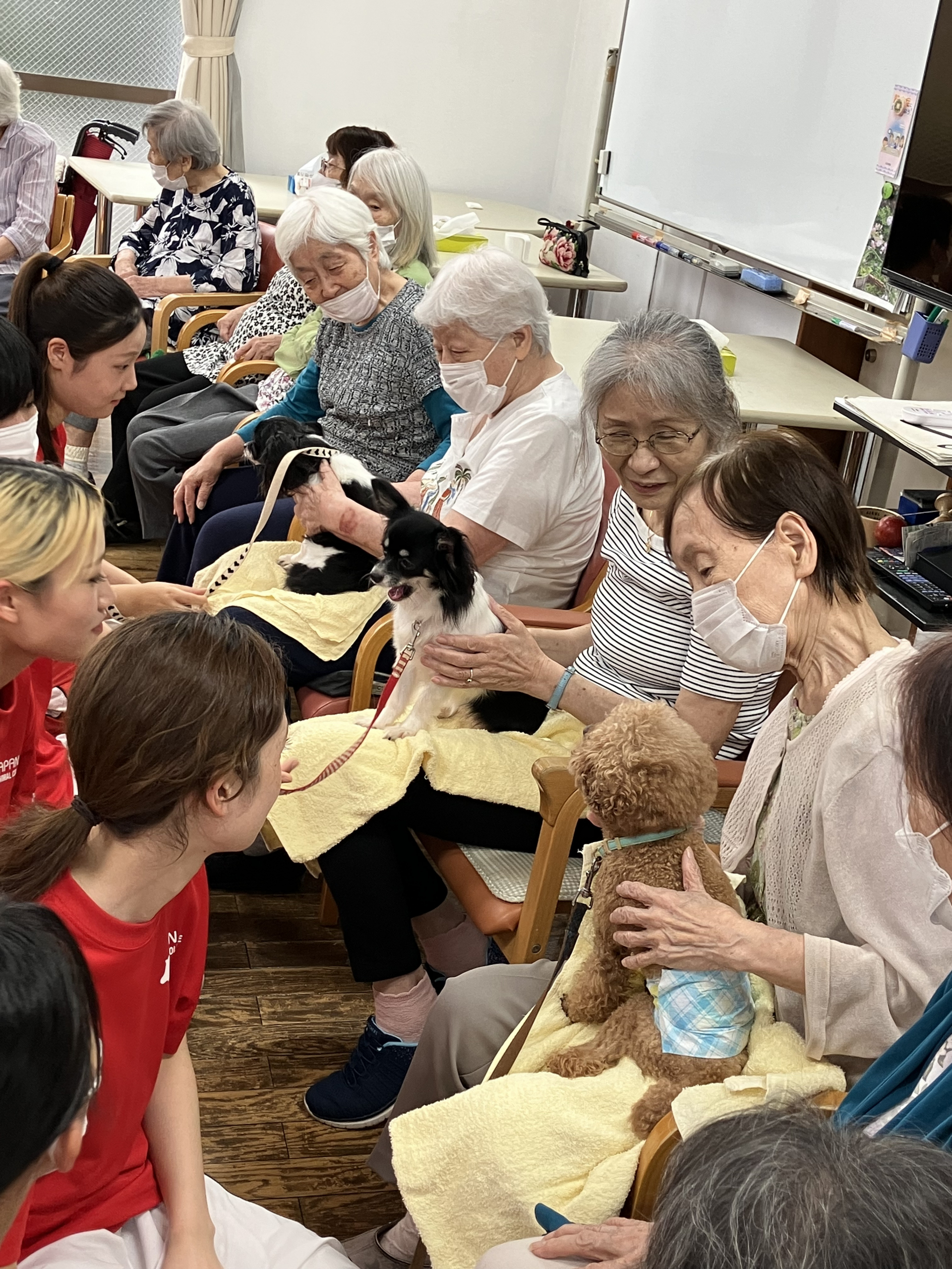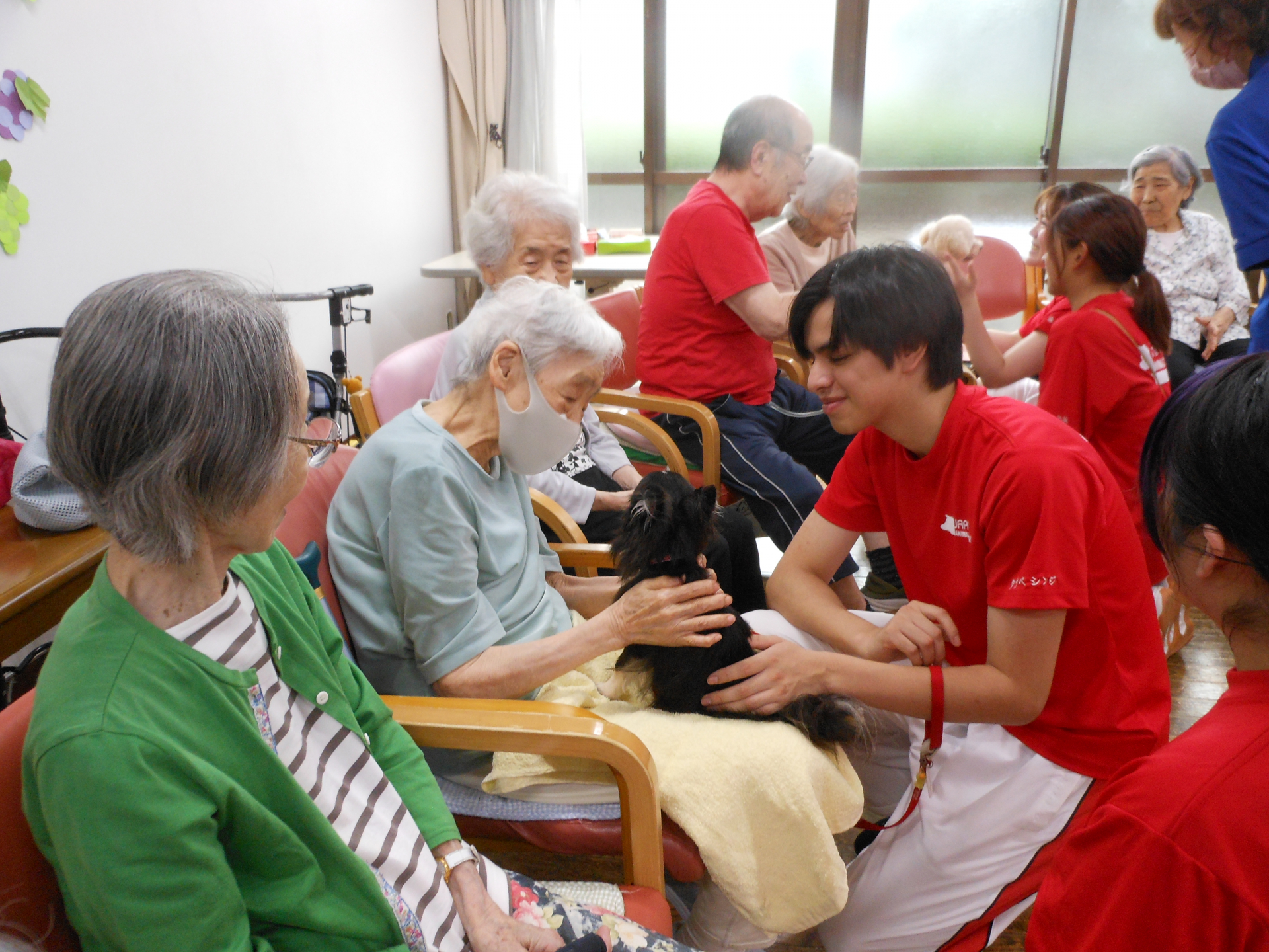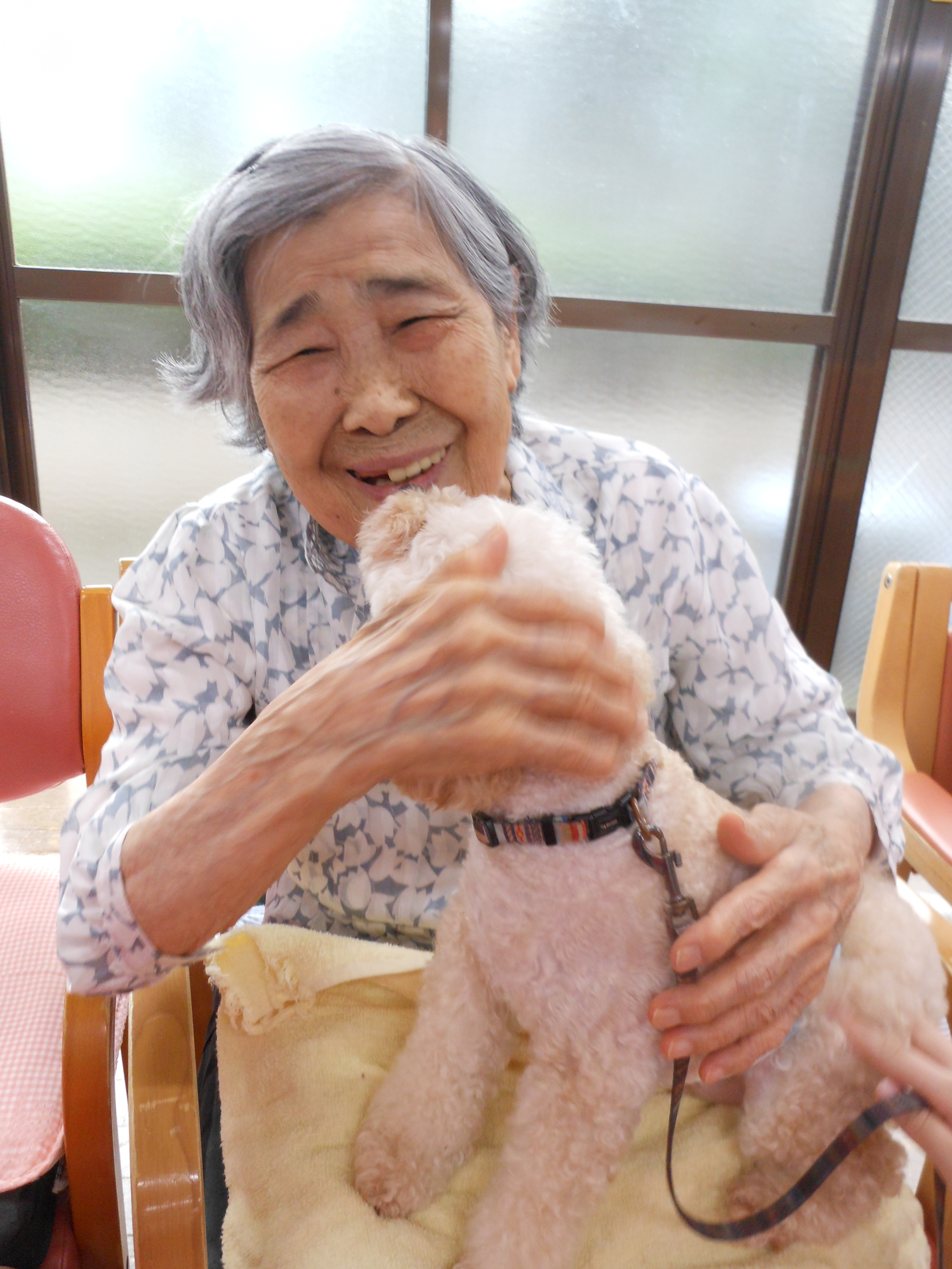 月に1回ですが、ワンちゃんとの触れ合いを楽しみにして下さっている方もおります。