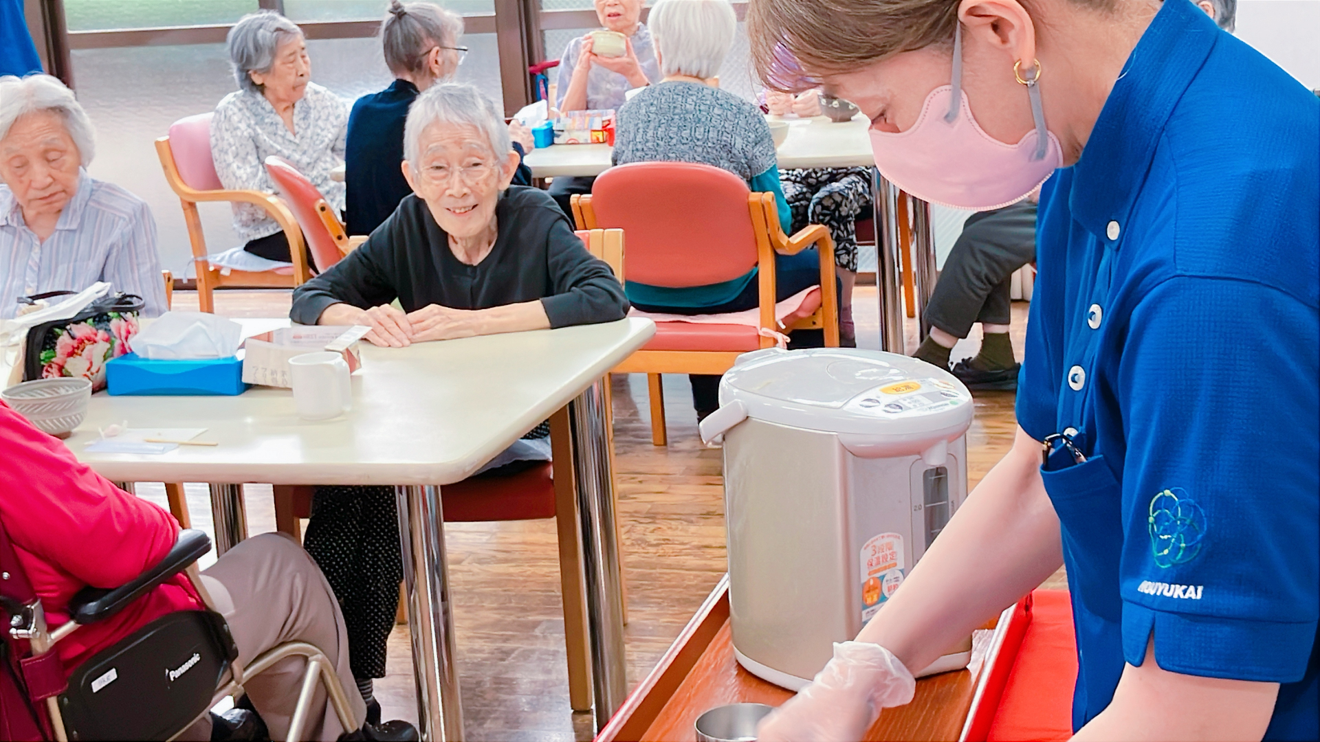 抹茶は茶道経験者の職員が皆様の前でたてさせて頂きました。