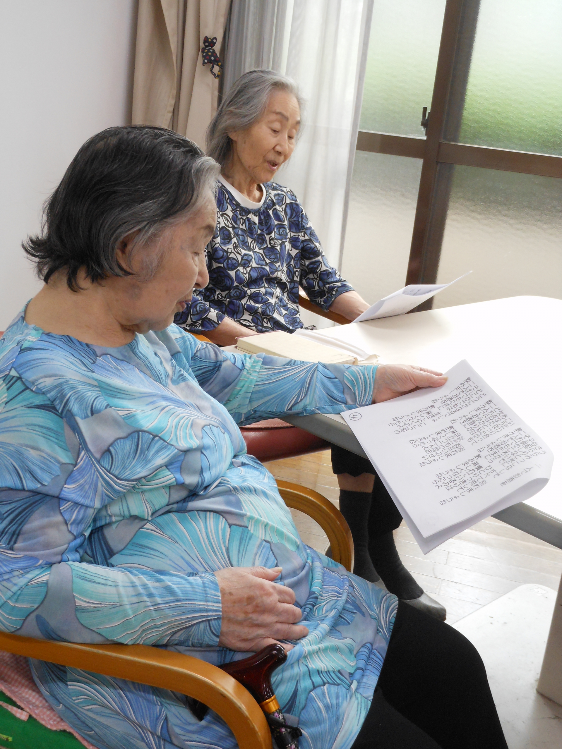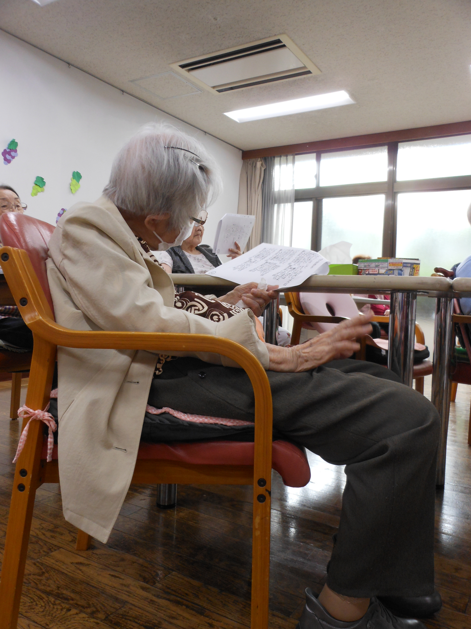 利用者の皆様には歌詞カードをお配りして一緒に唄って頂きました。