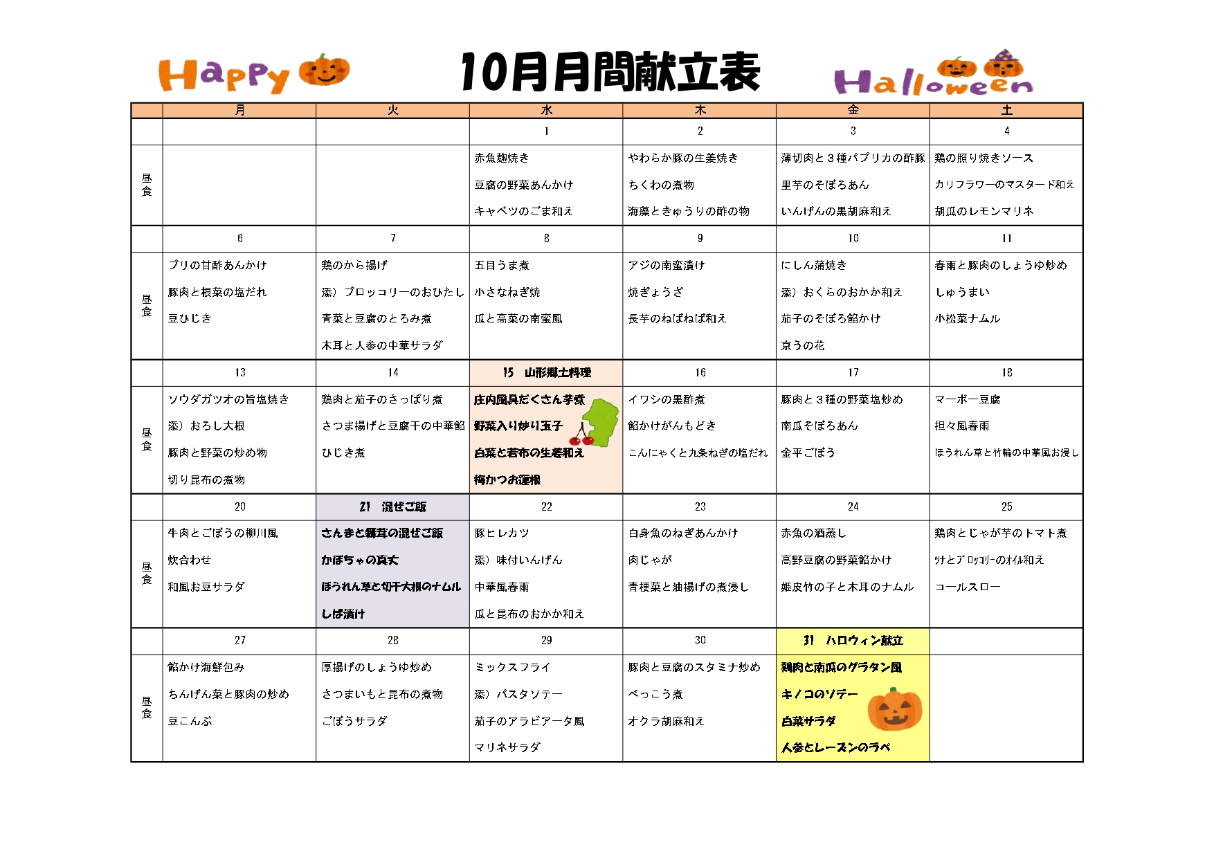 2025.10.01 ニュース 【高円寺デイ】★10月の献立★ Tweet シェアする デイホーム高円寺北ふれあいの家☆今月も美味しいお食事を提供致します! \令和7年10月の献立表です/ #デイサービス #デイ #介護 #福祉 #奉優会 #デイホーム高円寺北ふれあいの家 #10月の献立 前の記事 2025.10.02 ニュース 【高円寺デイ】絵手紙教室~10月編~ 次の記事 2025.10.01 ニュース 【高円寺デイ】★10月のプログラム★ 一覧へ戻る