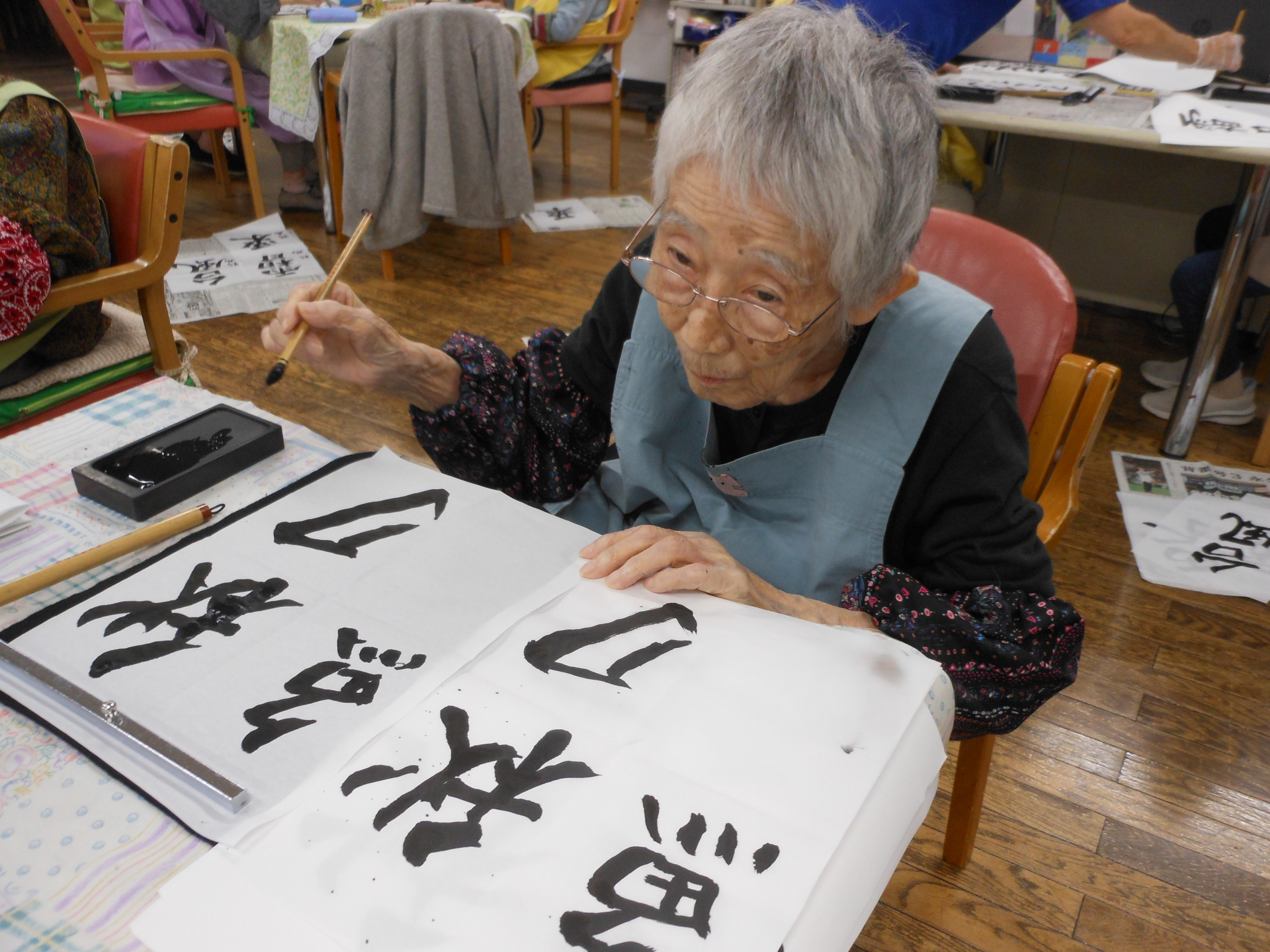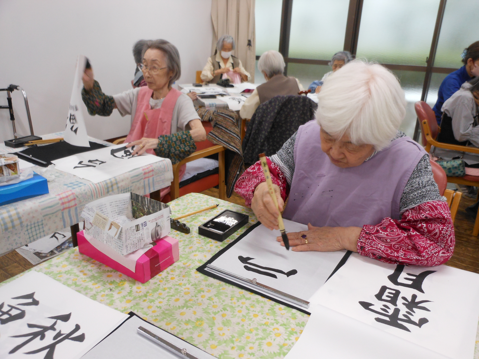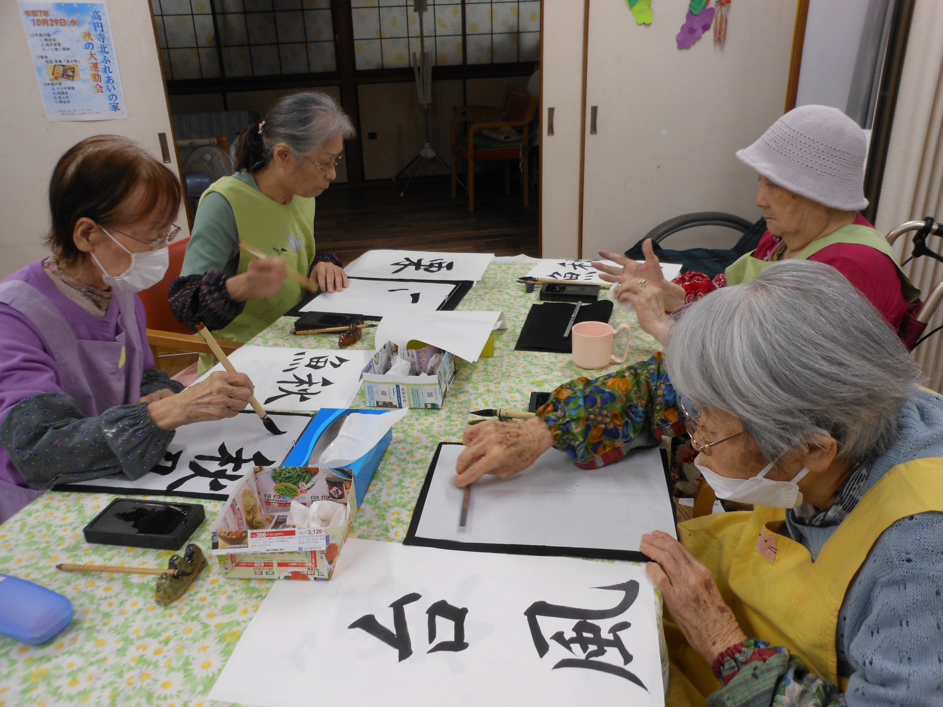 本日、午後のプログラムは書道です。