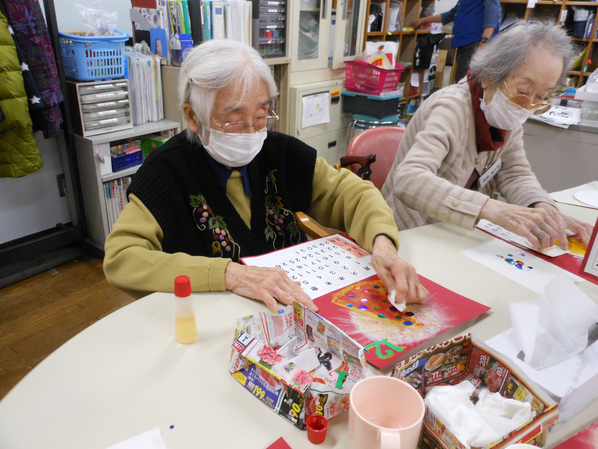 型取りの上からスポンジを使って絵の具をポンポンと叩き色を付けていきます。
