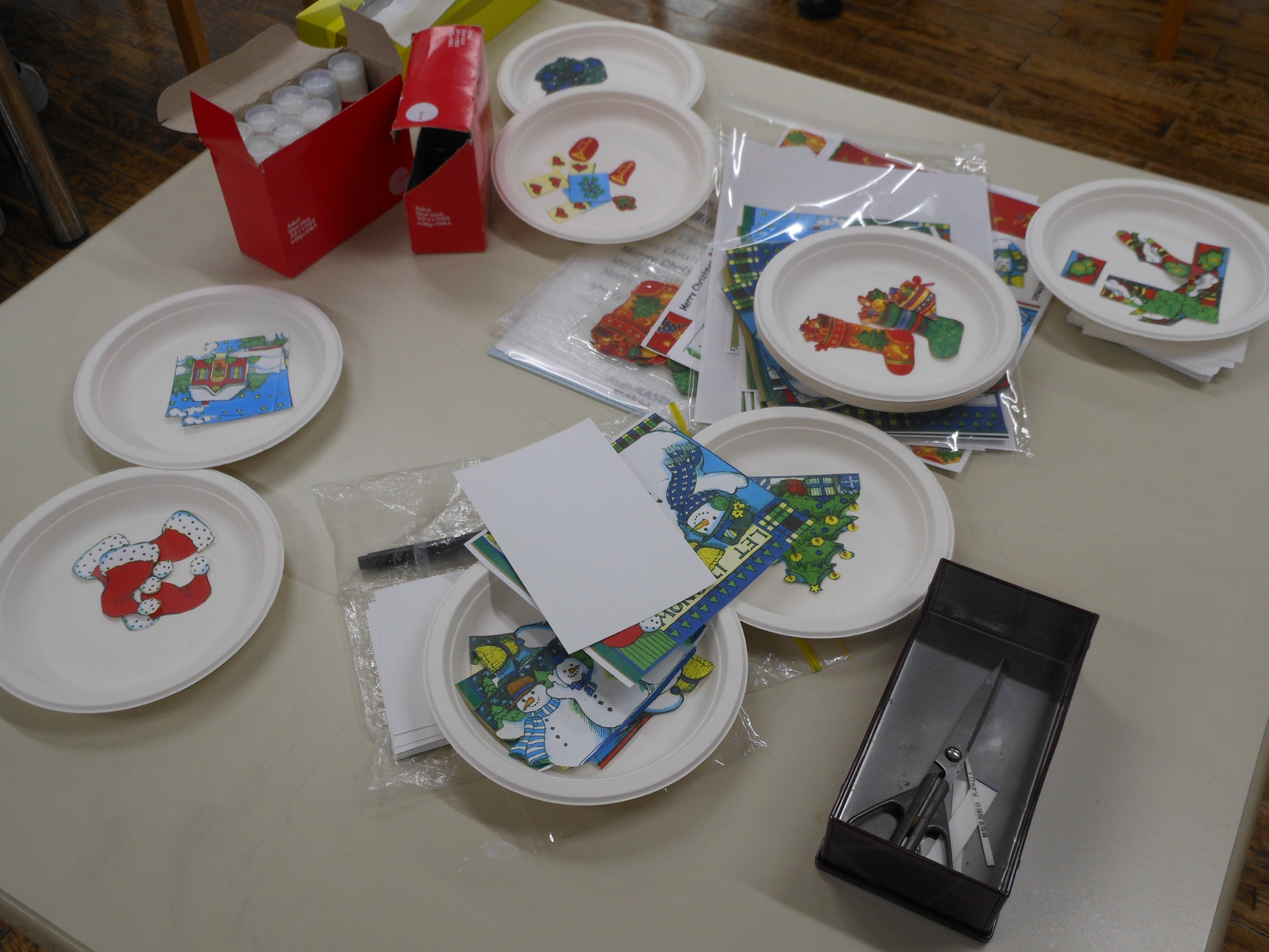 素材の絵を切ったり、貼ったりし、仕上げていきます。