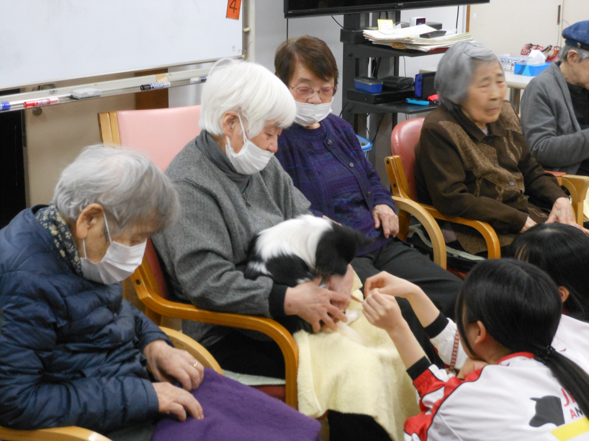 膝の上に乗ったかわいいワンちゃんたちとふれあい、たくさんの笑顔を見せられ、とても癒されたご様子でした。