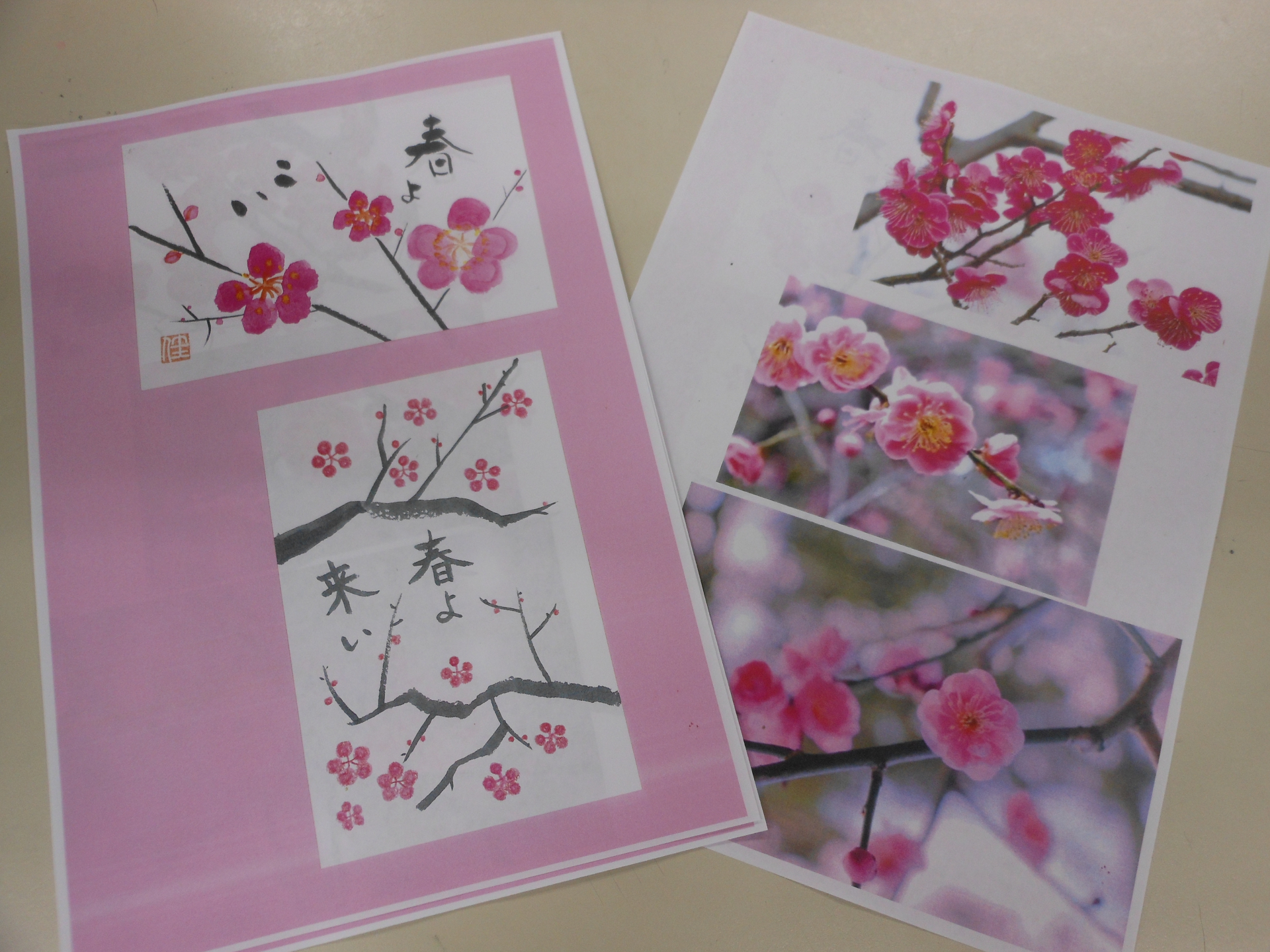 今月の絵手紙教室は『梅の花』を描こうでした。