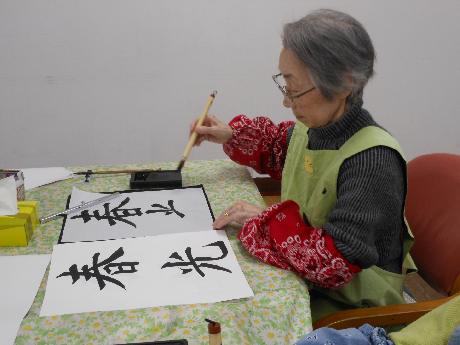 お手本を見ながら、皆様集中してお書きになっていました。