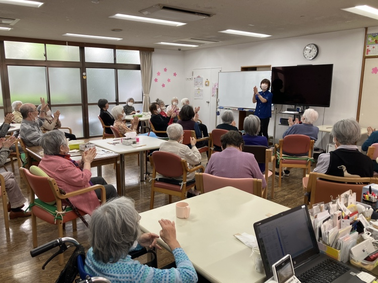 体操の後は口腔体操でお食事に向けて唾液の分泌を促します。
