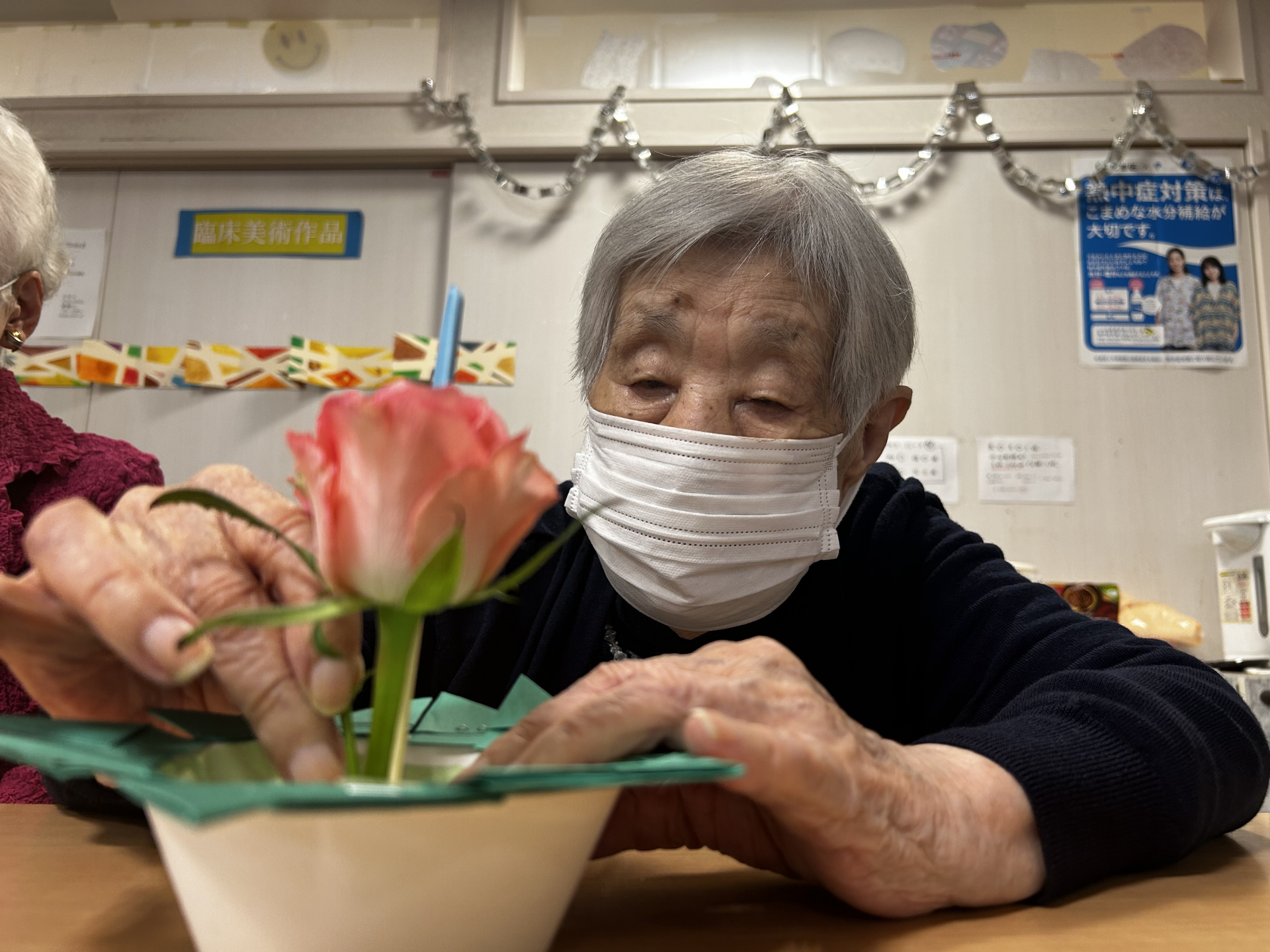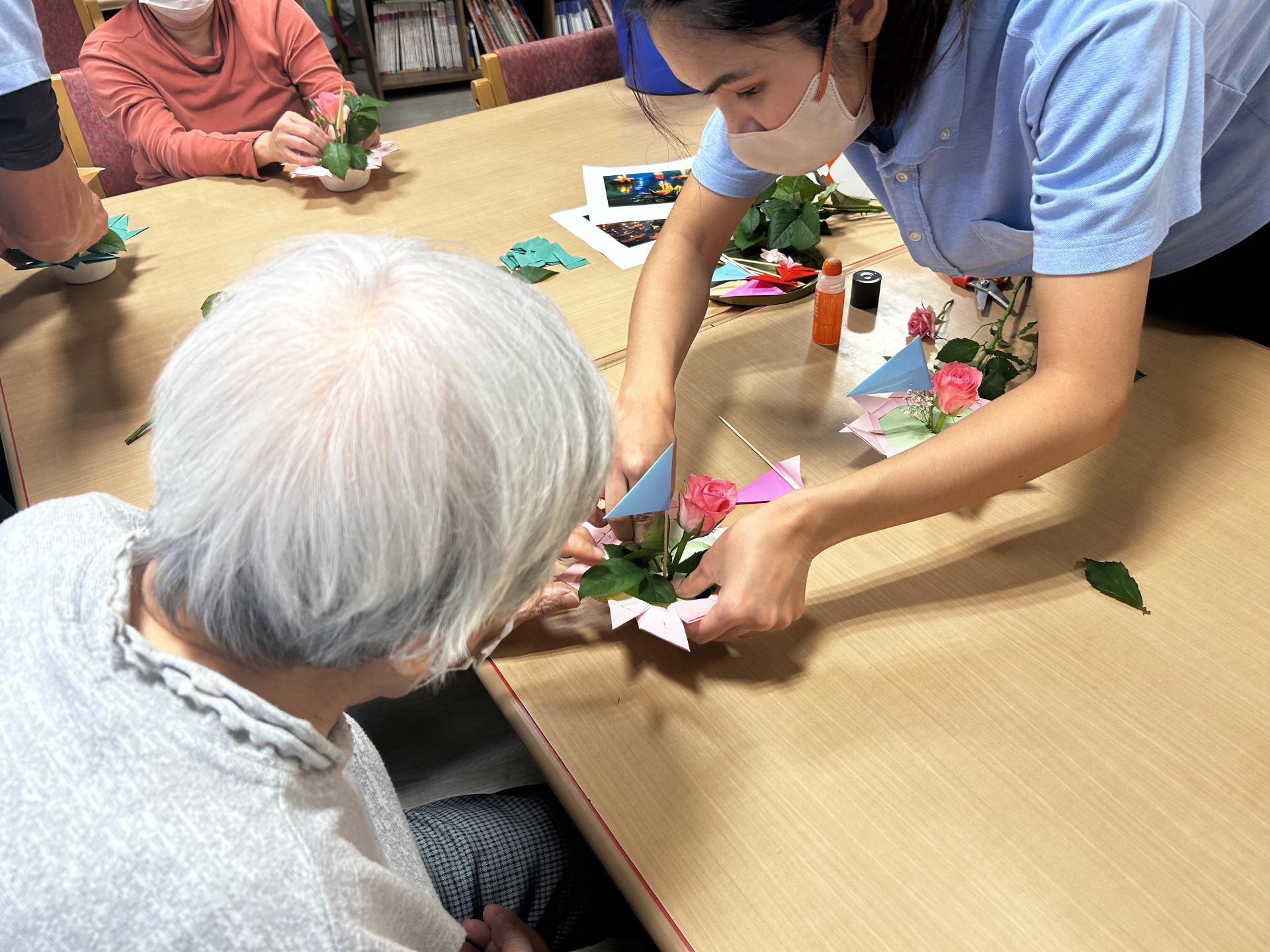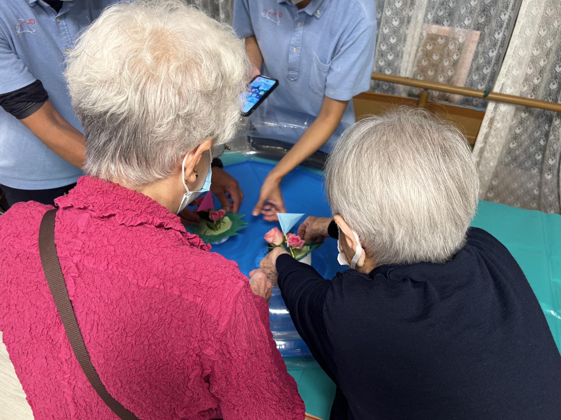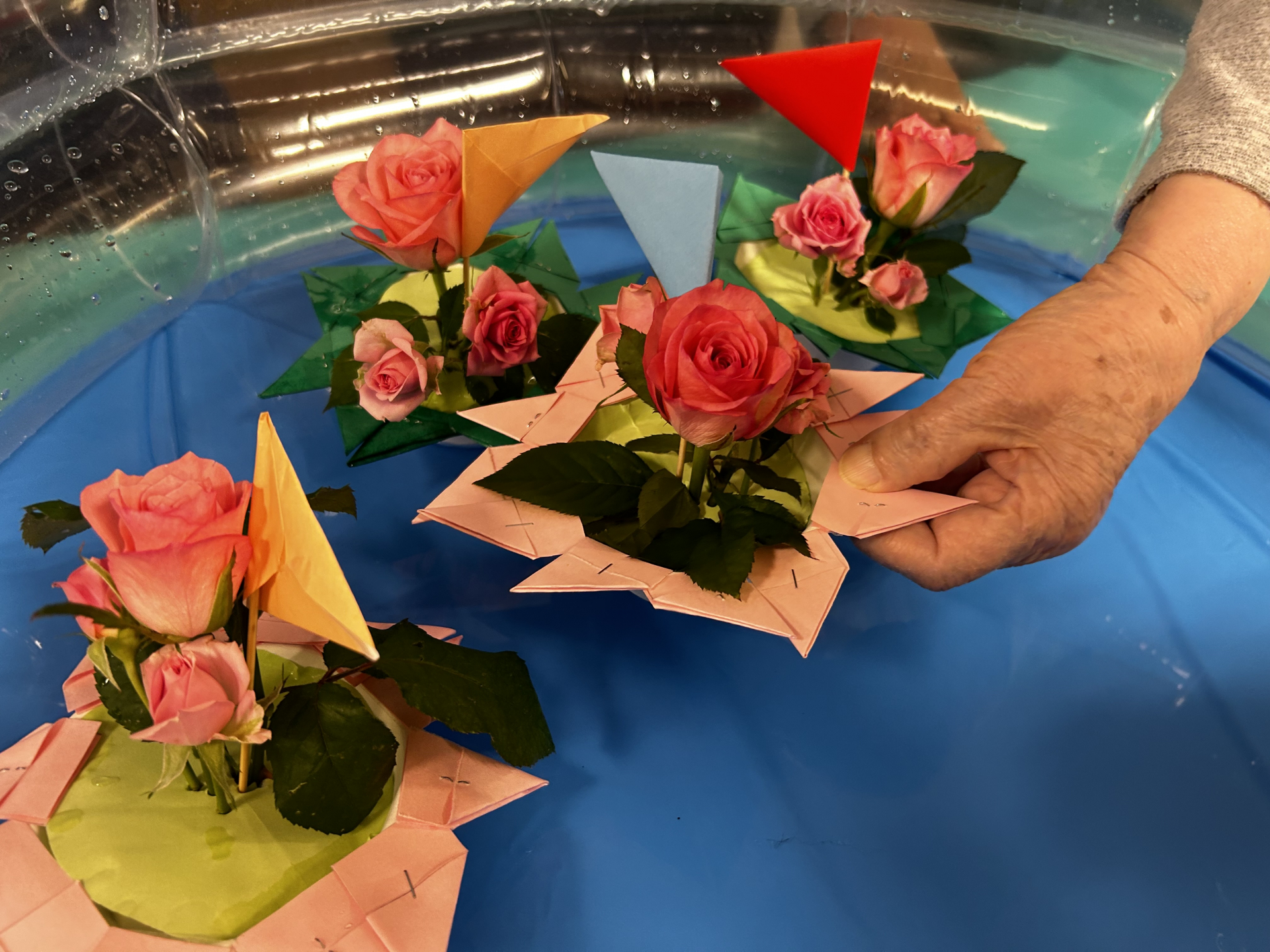 次にバラを生け水に浮かべる準備をします!