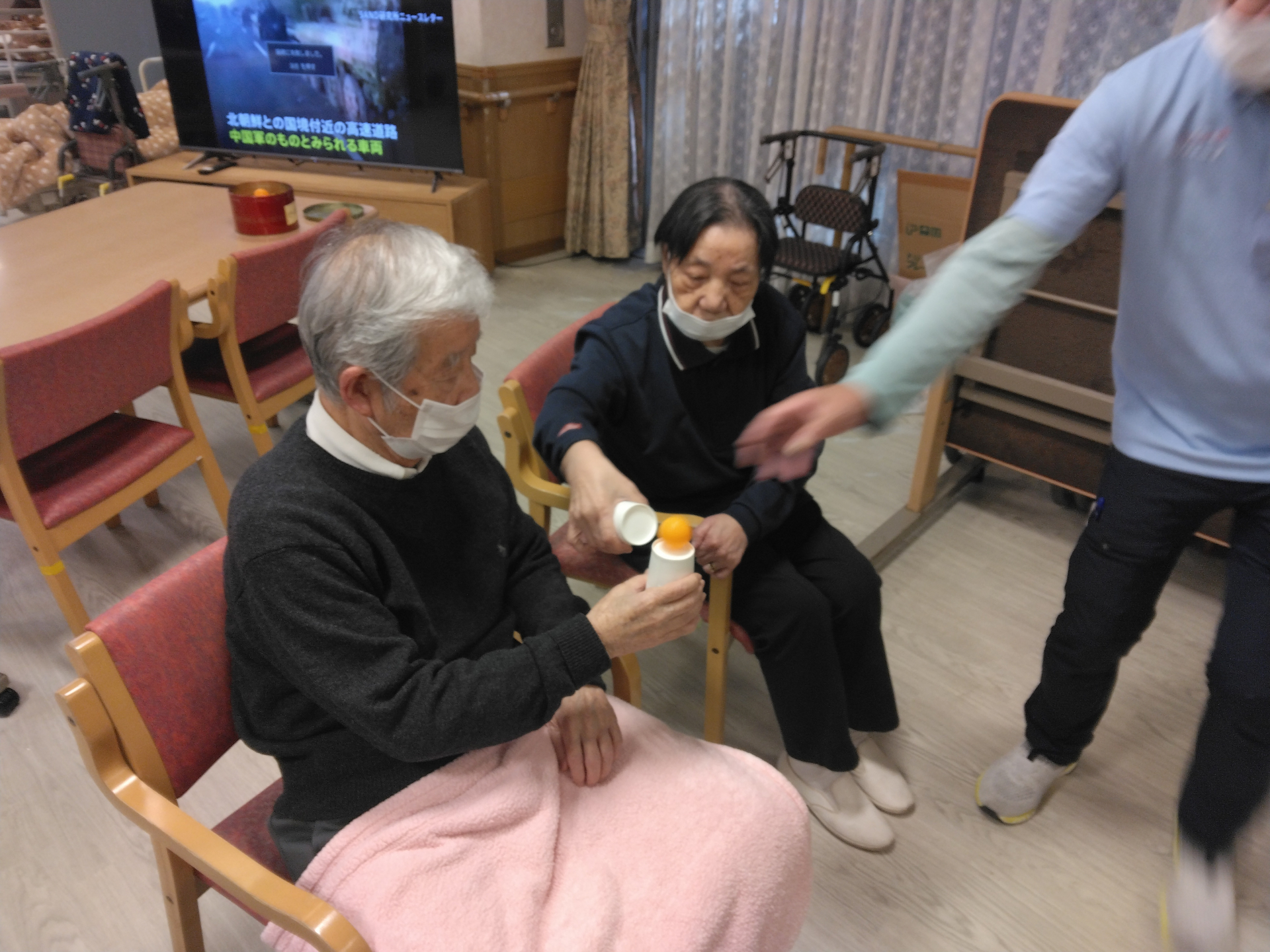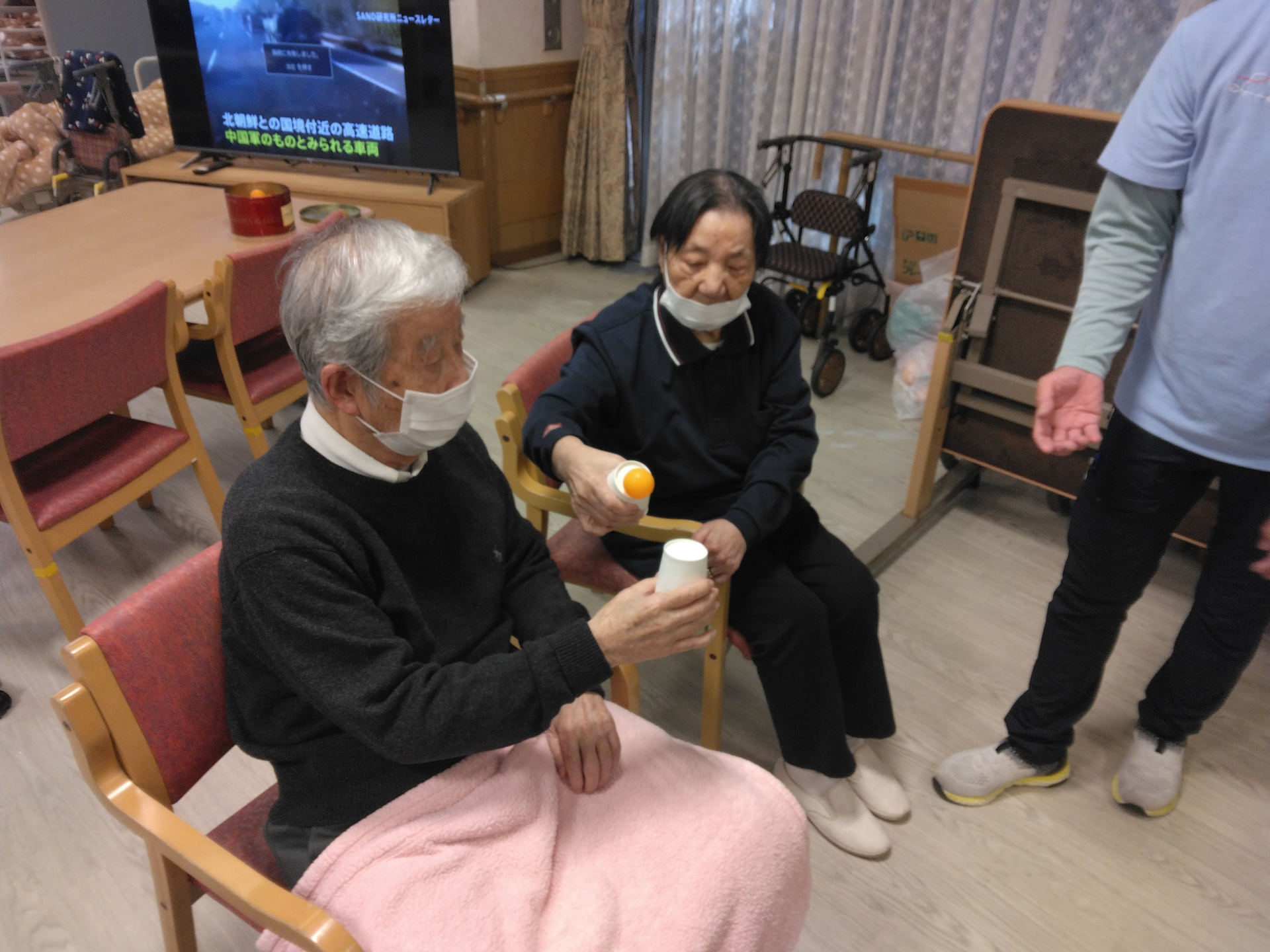 本日は午後のレクリエーションの時間に、ピンポン玉リレーゲームを行いました!