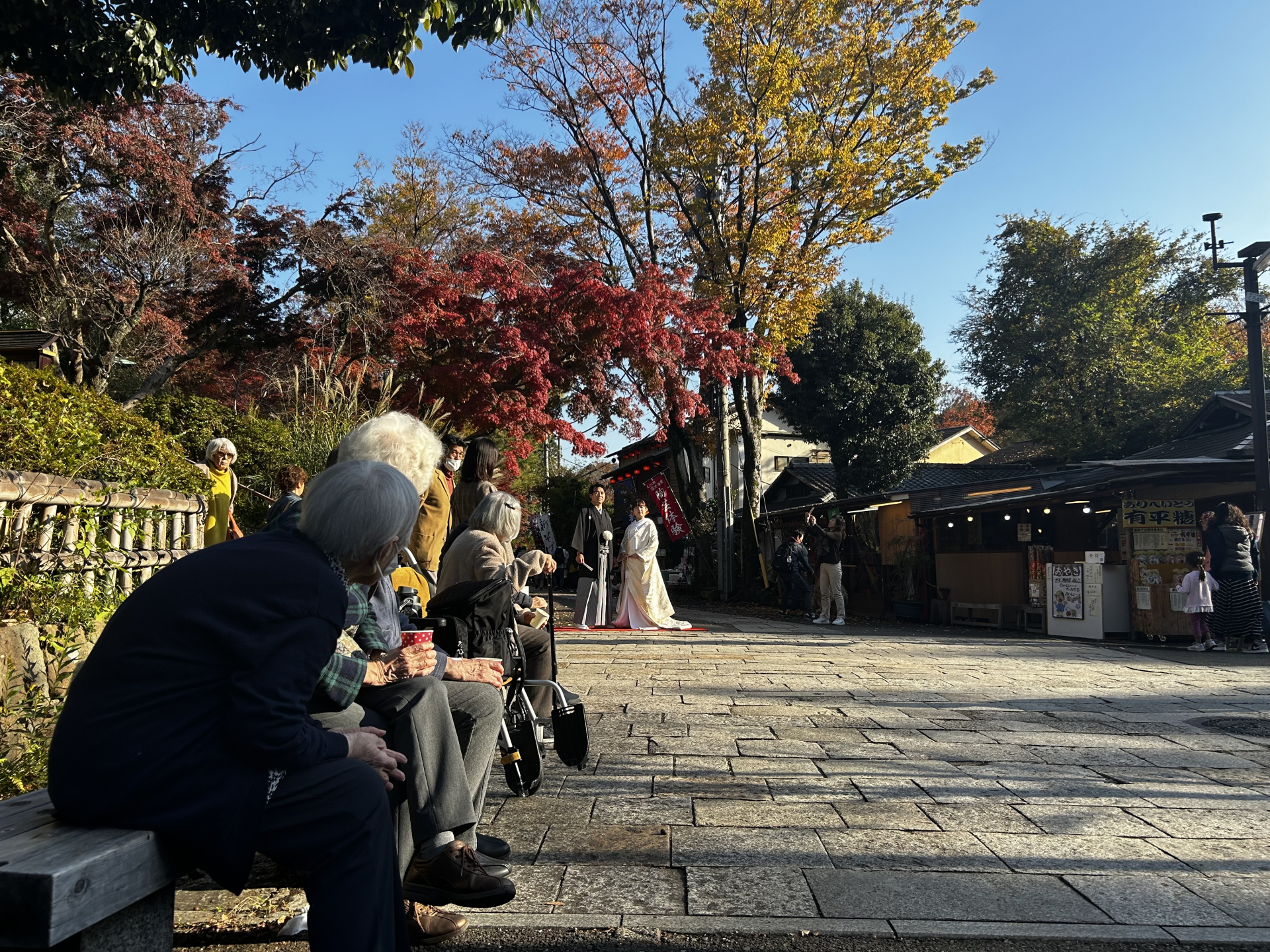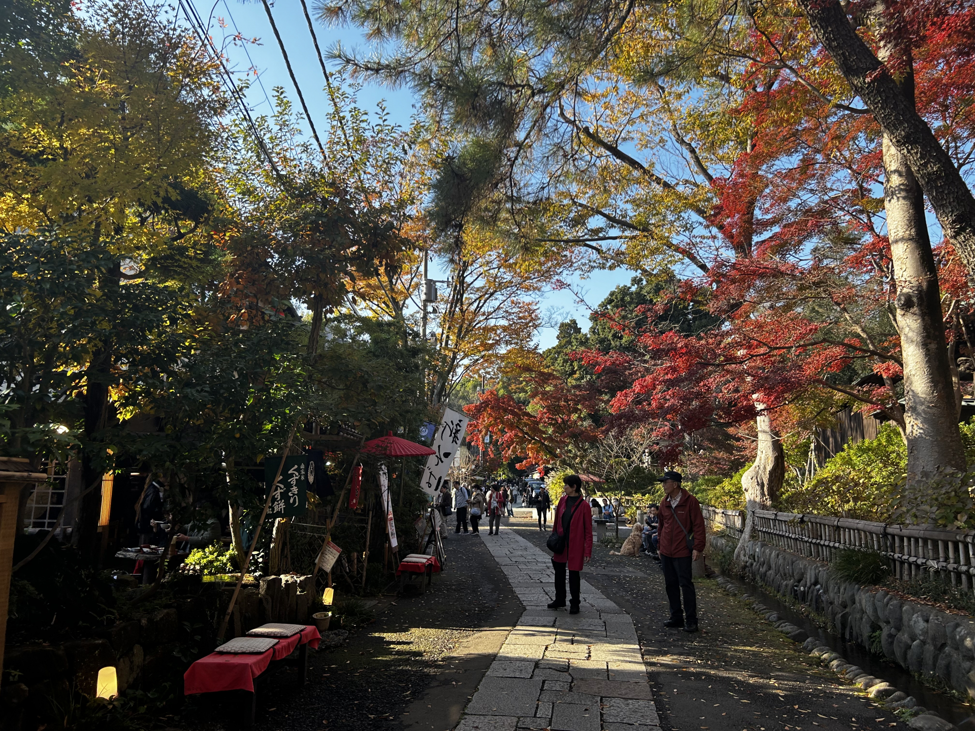 深大寺では綺麗な紅葉道があり、その通りにはお蕎麦やお団子などを販売している出店も豊富です!