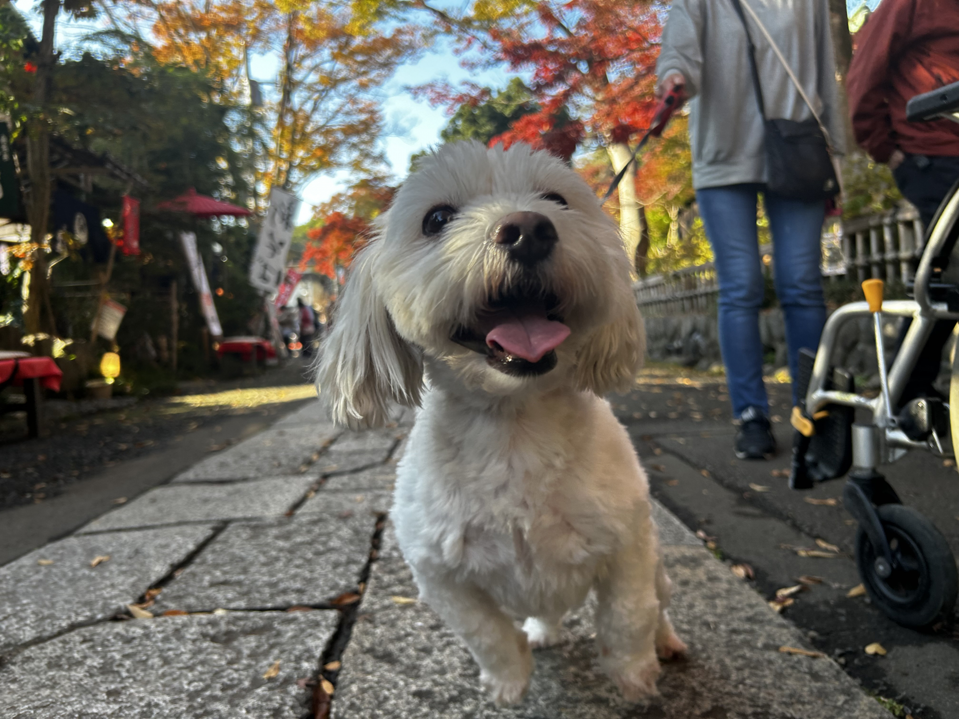 散歩しながら紅葉を見ているとワンちゃんにも出会えました!