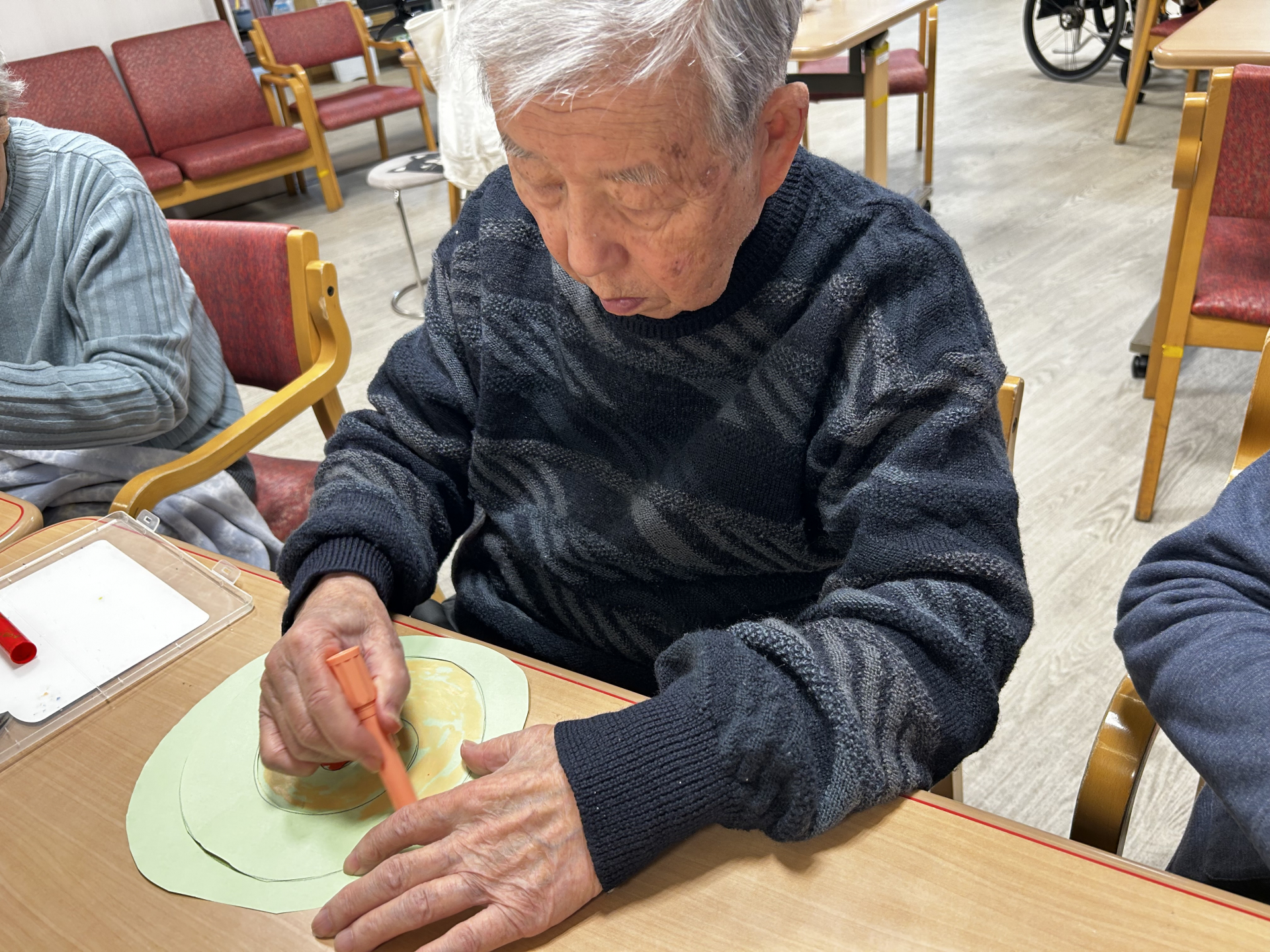 今年は巳年ですね!今回のレクでは干支にちなんだ手工芸に挑戦して頂きました。