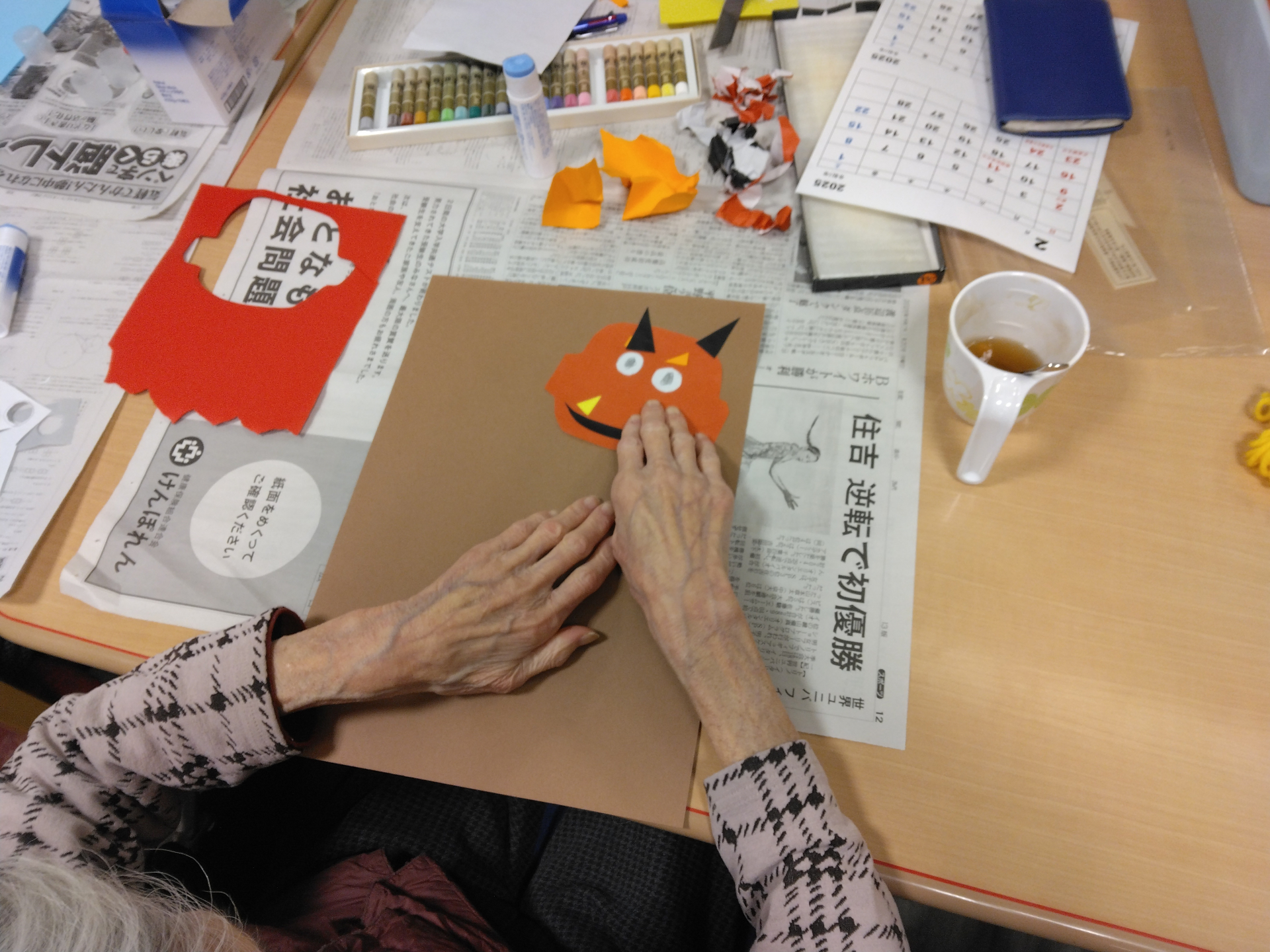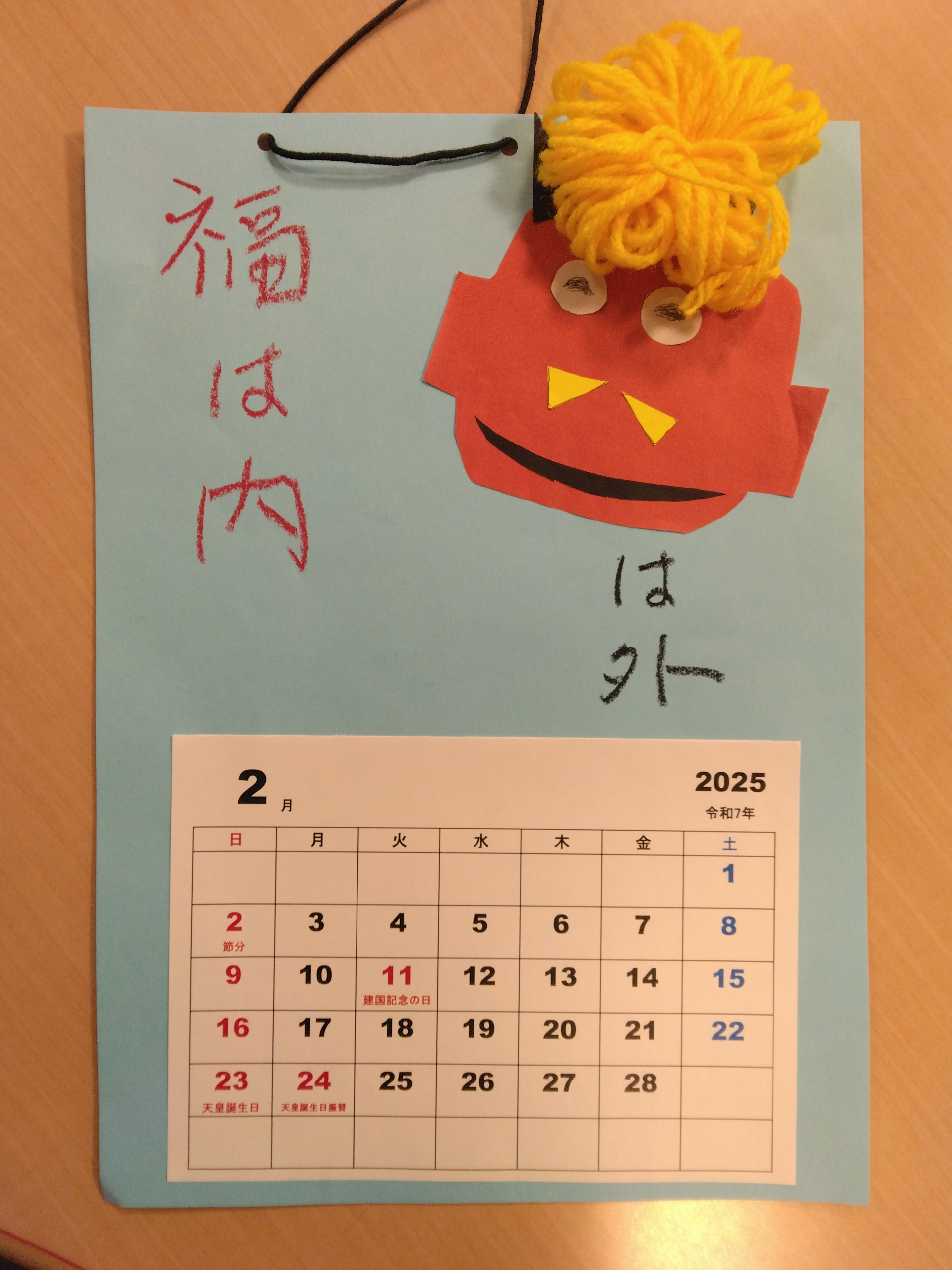 2月ということで、節分の豆まきをテーマにした作品をつくられましたよ~。