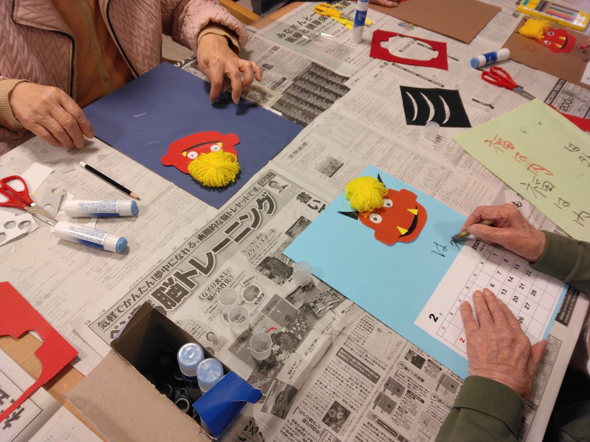 今日の午後は「手工芸プログラム」として2月カレンダー作りを行いました!