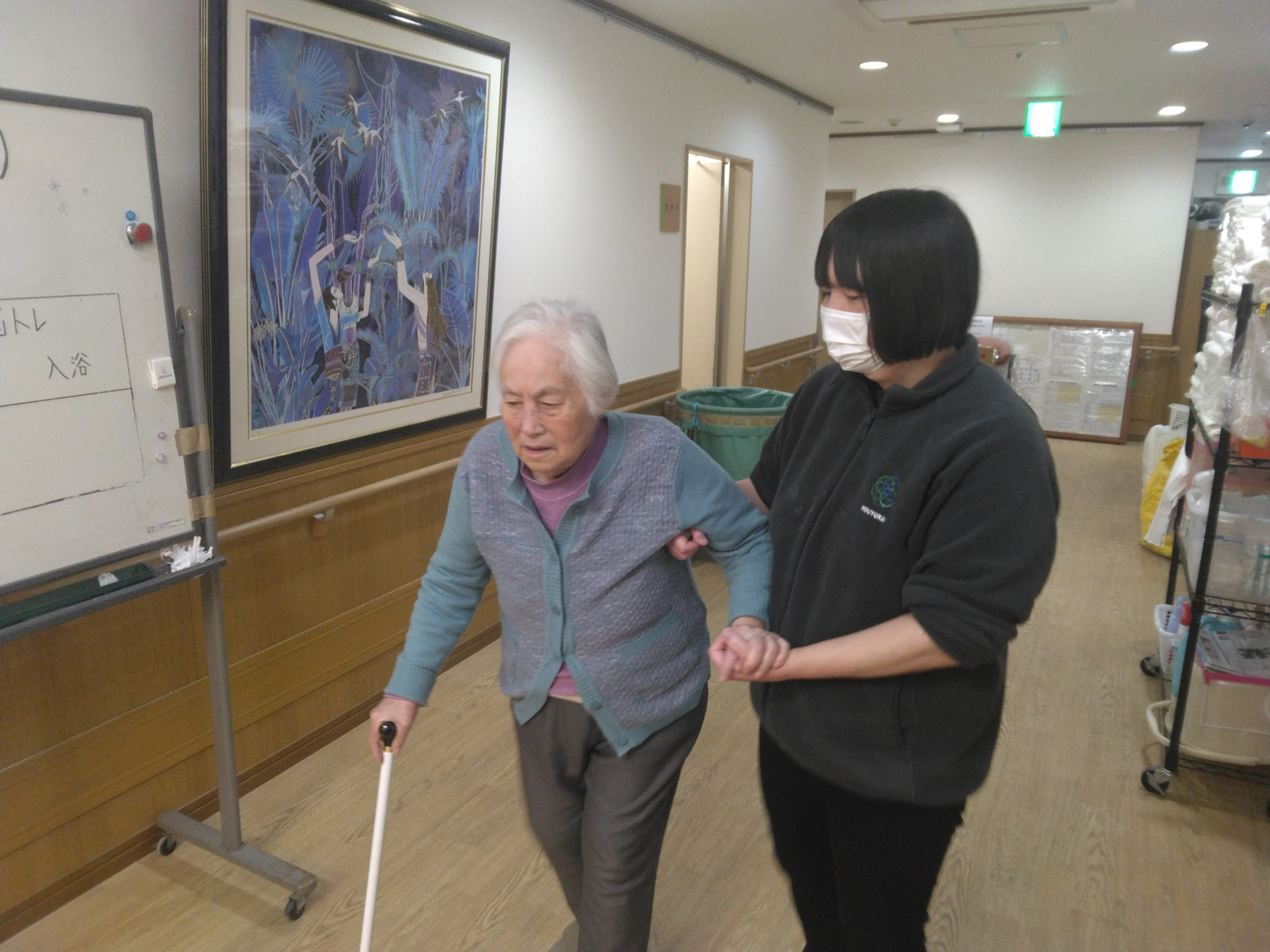 本日はお帰り前の時間にTさまを歩行訓練にお誘いしましたよ!