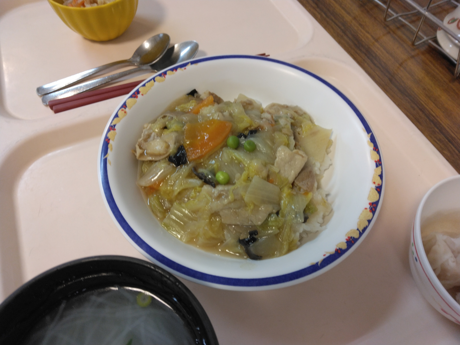 今日のお昼ご飯は中華丼でした!美味しく野菜の栄養を摂っていただきましたよ~♪