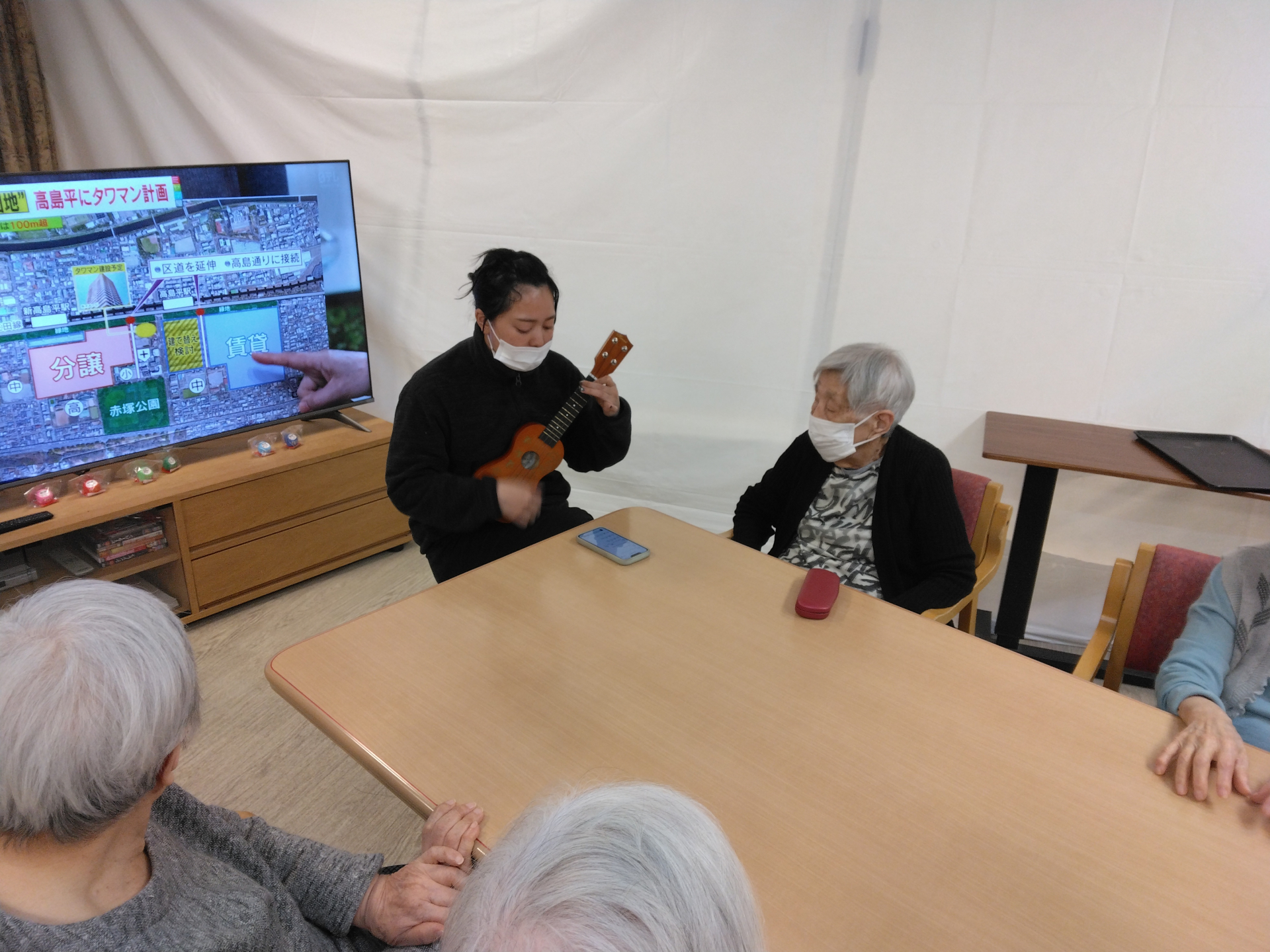 今日は15時のおやつの後にK職員がウクレレ演奏を聞かせてくれました!
