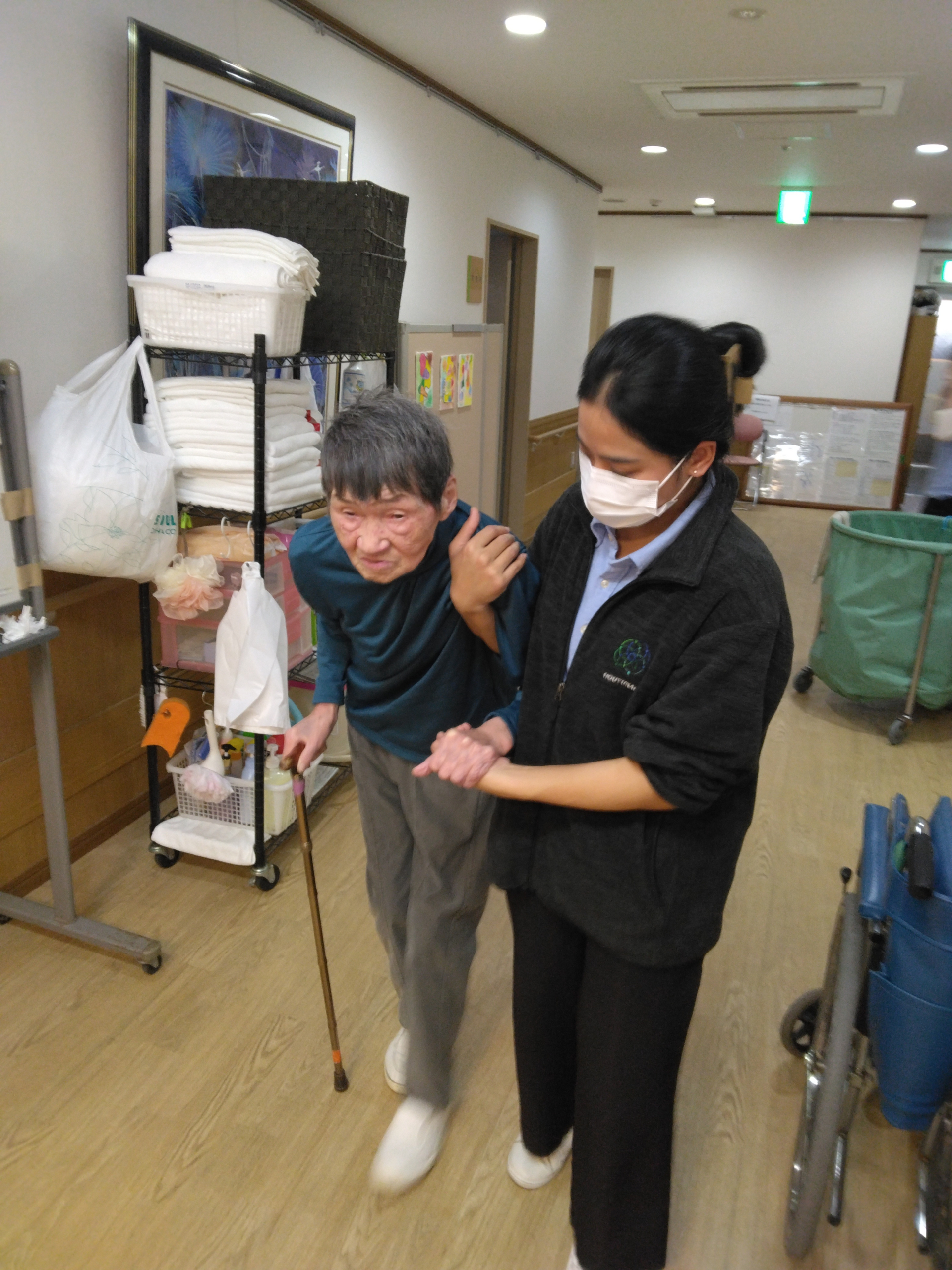 Sさまに本日も廊下歩行訓練にご参加いただきました!