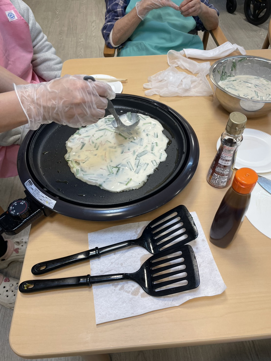 【沓掛デイ】沖縄風お好み焼き「ヒラヤーチー」【調理レク】