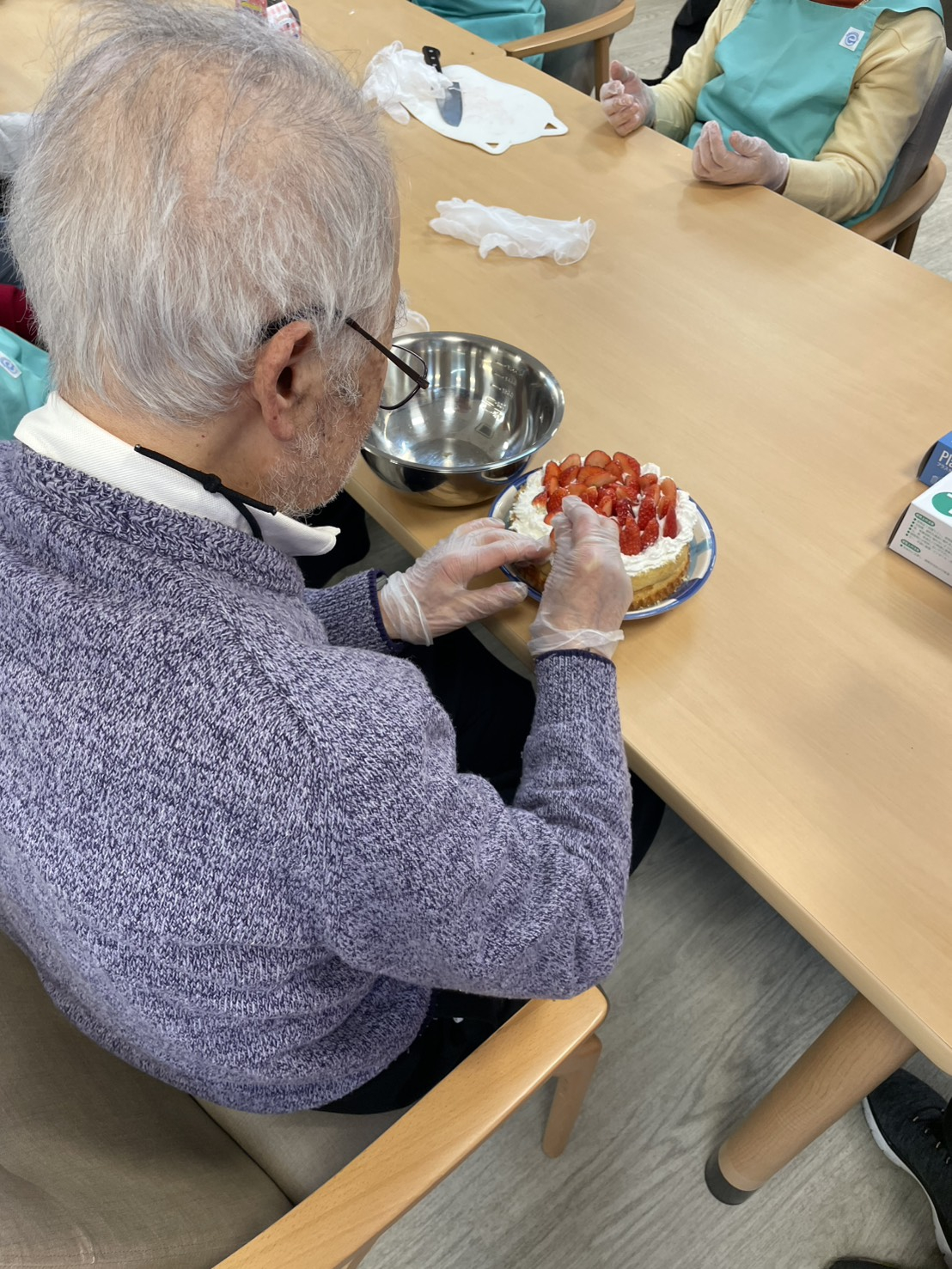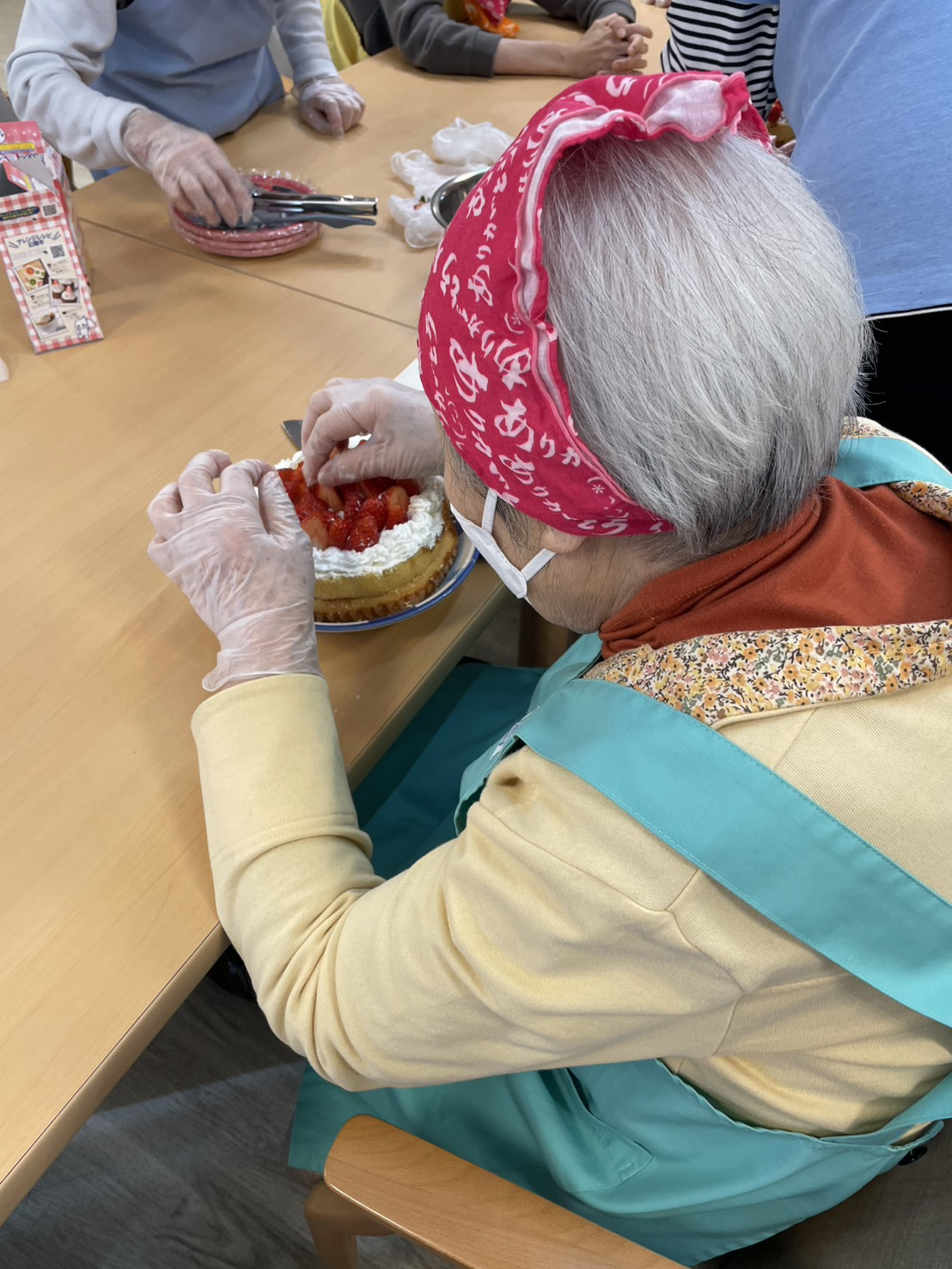 本日はクリスマス当日!ということで調理プログラムとしてクリスマスケーキ作りを行いました!