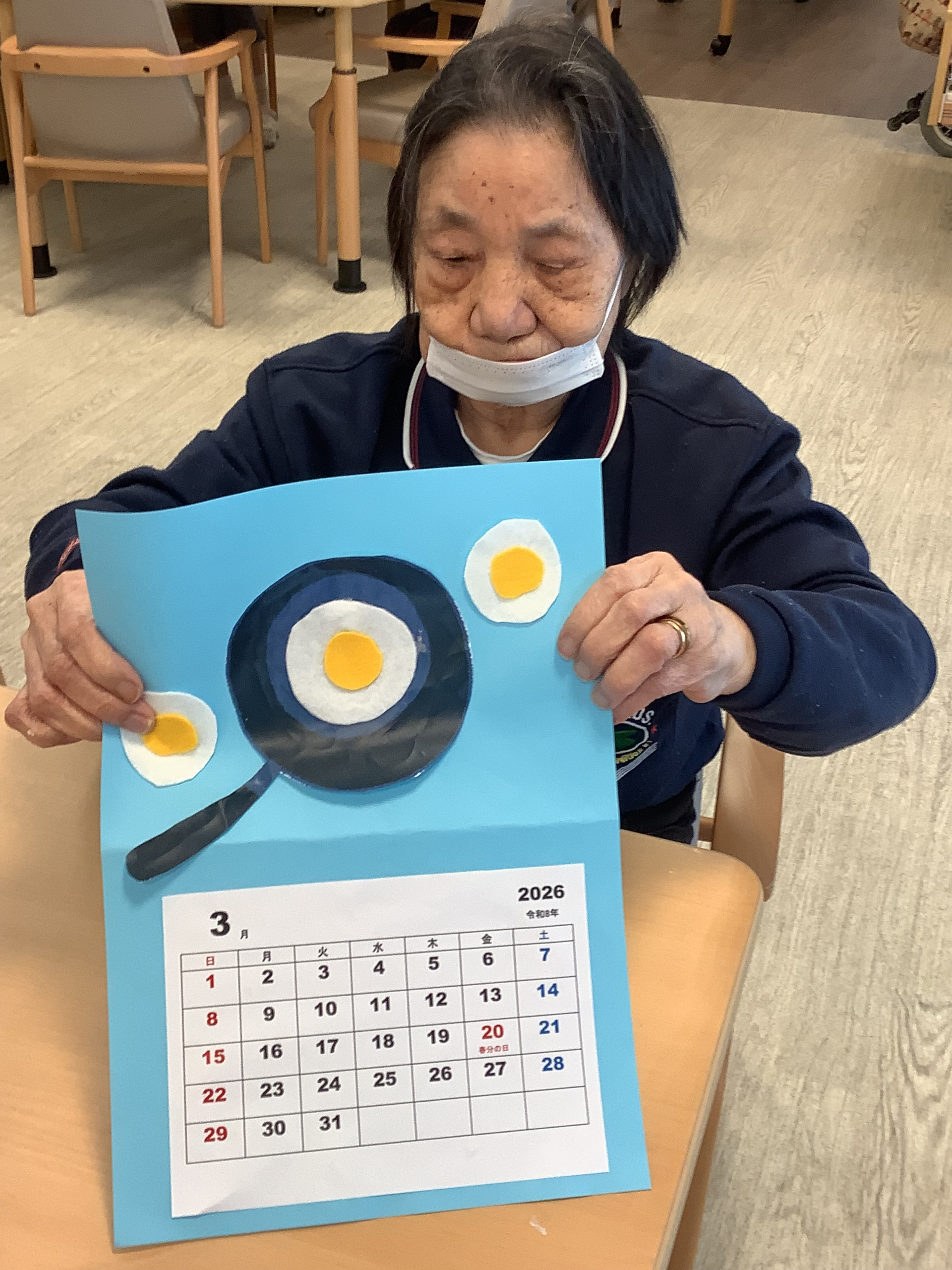 フライパンやたまご焼きの形を上手に切り抜きされていました(^^)ご自宅で飾ってお使いくださいね〜^_−☆