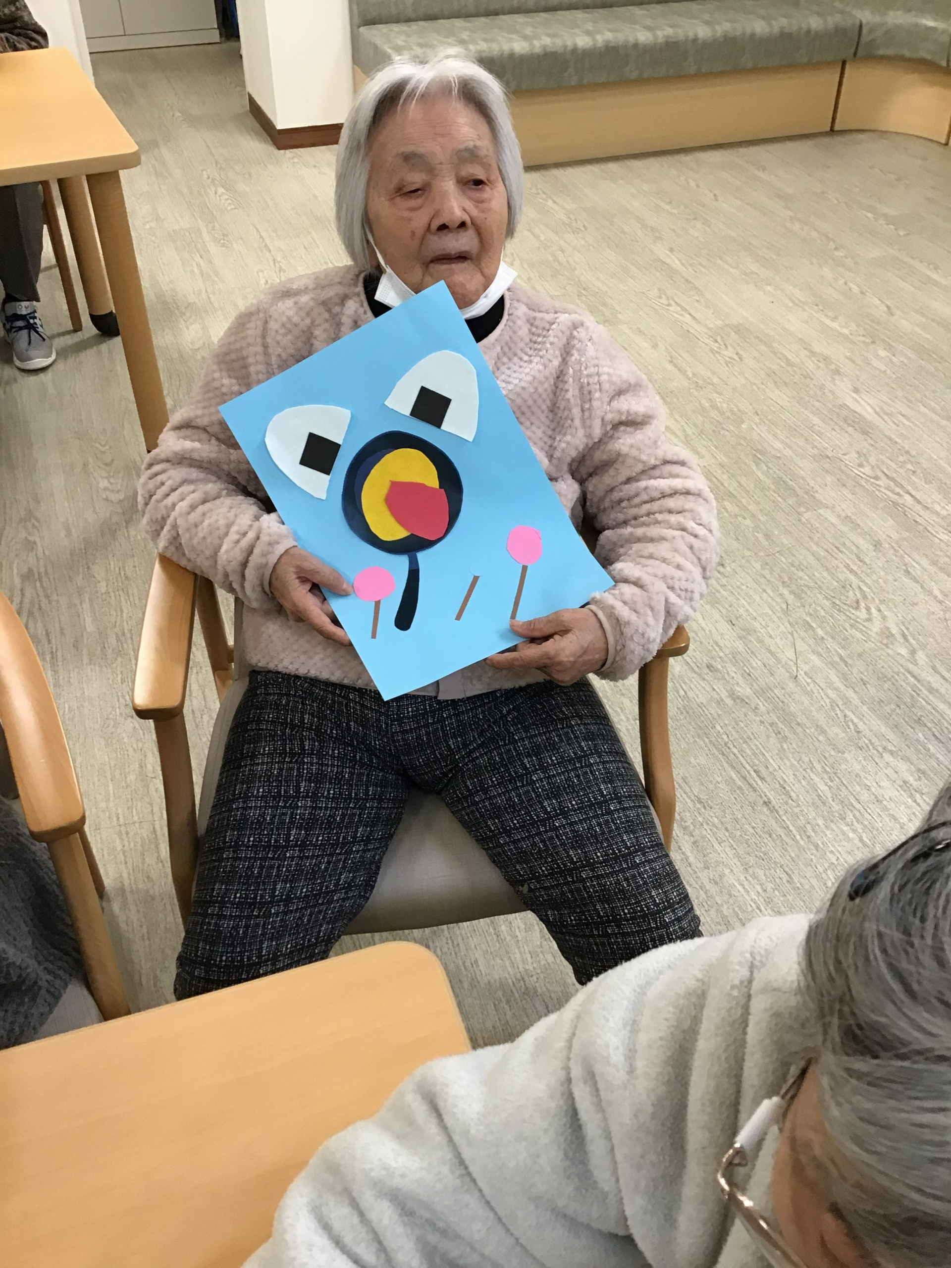 本日のレクではフェルトを使用し、おにぎりやオムライスを作成してくださいました。