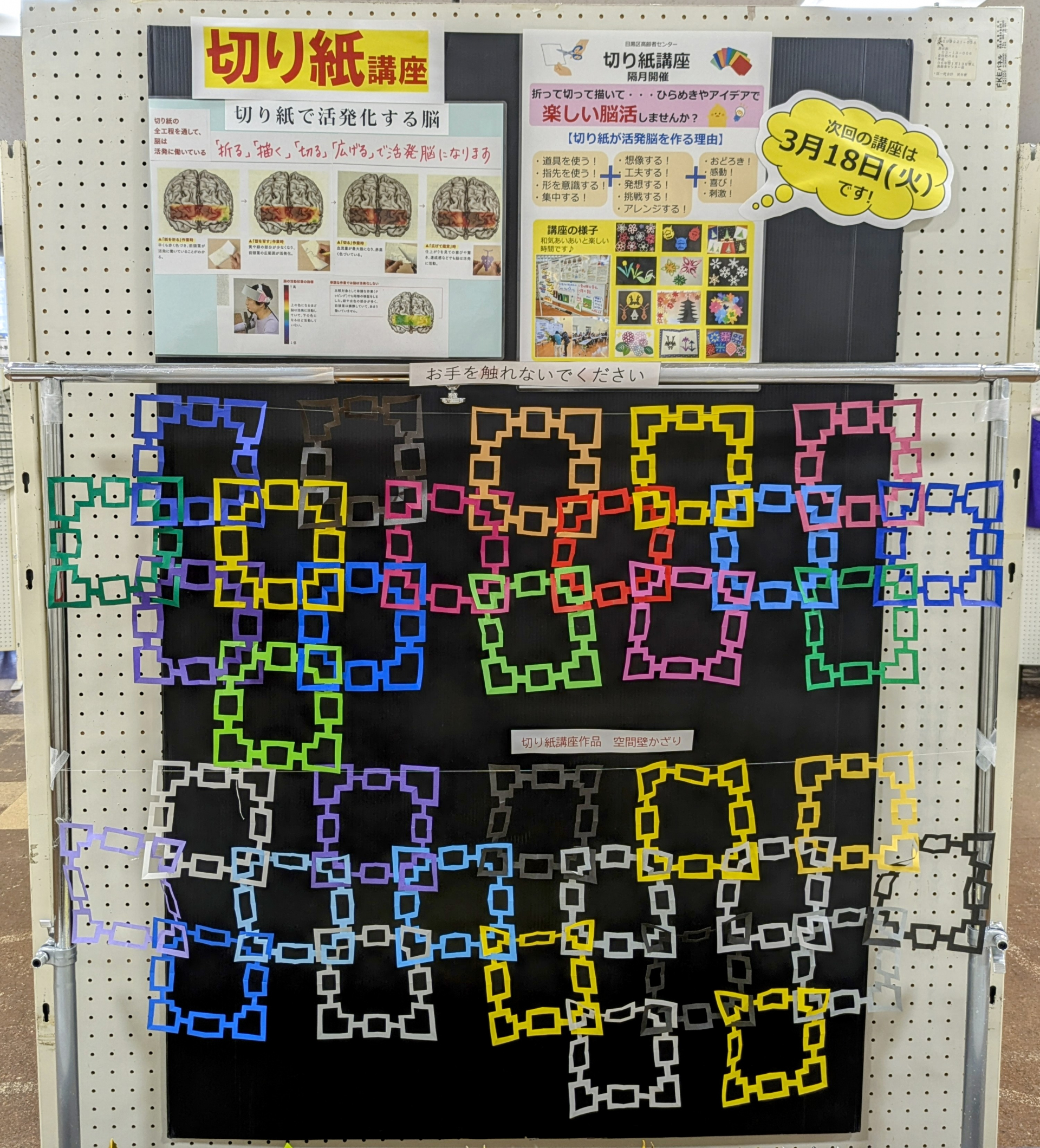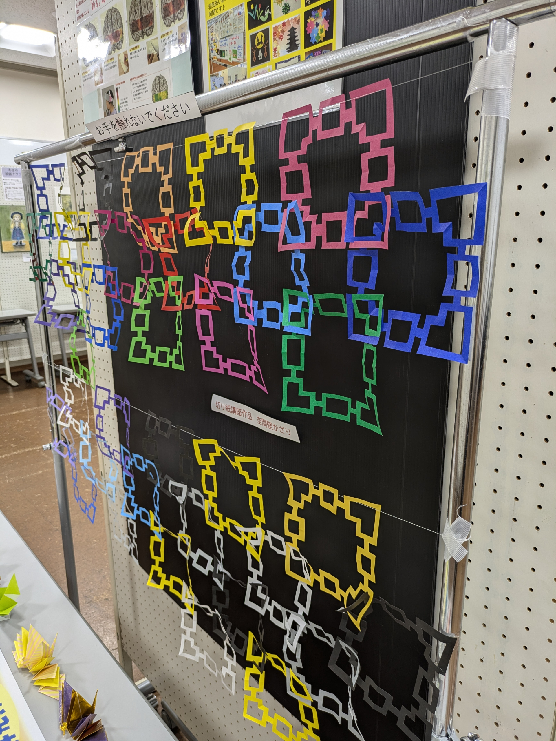 昨日から明日まで開催のサークル団体による集会室での作品展示に、11月の切り紙講座の作品も展示させていただいております。