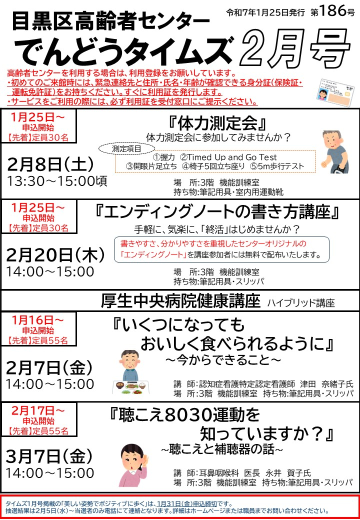 2025.01.23 お知らせ 2025.2月でんどうタイムズを公開いたします。 Tweet シェアする 前の記事 2025.01.23 お知らせ 2025.2月オンライン講座予定表を公開いたします。 次の記事 2025.01.22 お知らせ 【目黒区高齢者センター】リフレッシュヨガを開催しました 一覧へ戻る