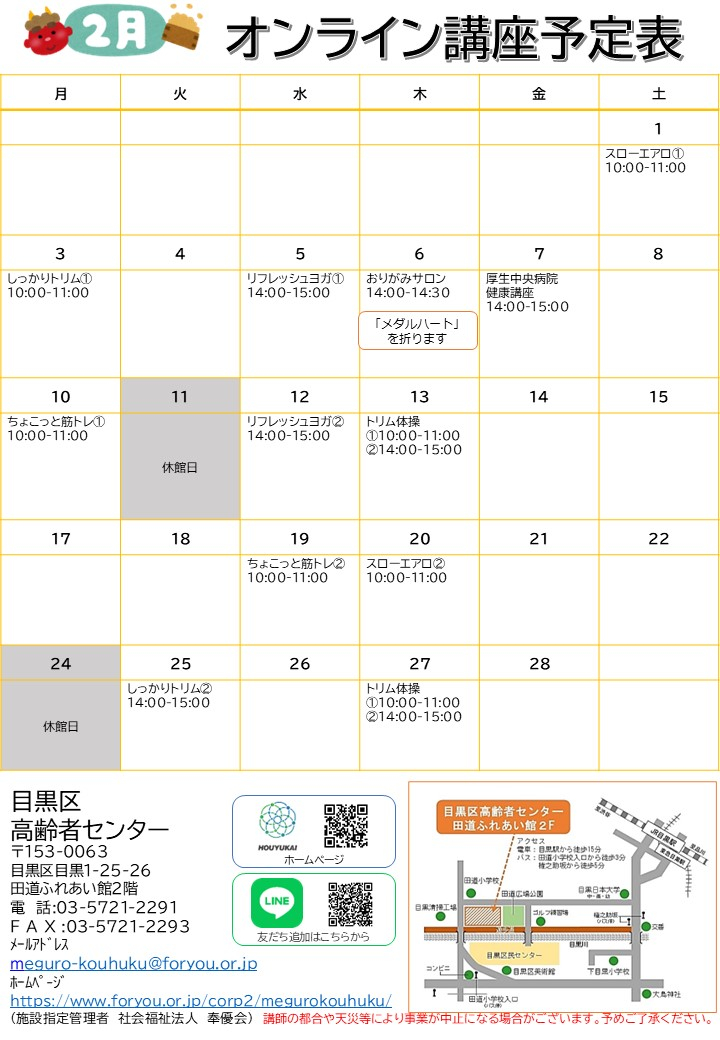 2025.01.23 お知らせ 2025.2月オンライン講座予定表を公開いたします。 Tweet シェアする 前の記事 2025.01.23 お知らせ 【目黒区高齢者センター】ZOOM講座を開催しました! 次の記事 2025.01.23 お知らせ 2025.2月でんどうタイムズを公開いたします。 一覧へ戻る